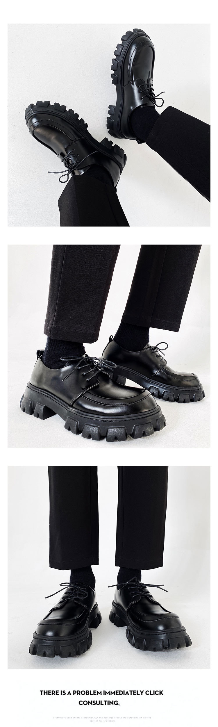 한국 거리 가죽 신발 트렌디 한 남성용 틈새 패션 블랙 플랫폼 높이 증가 캐주얼 신발 정품 가죽 영국 스타일스토어 가기