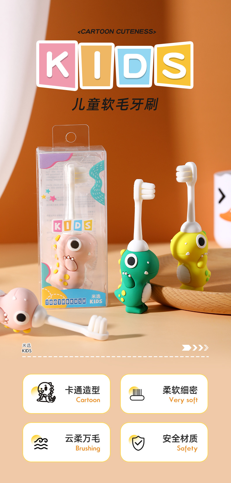 Yunrou Wanmao 어린이 칫솔 싱글 팩 2-10 세 아기 귀여운 공룡 미세 소프트 헤어 칫솔 공장 도매스토어 가기