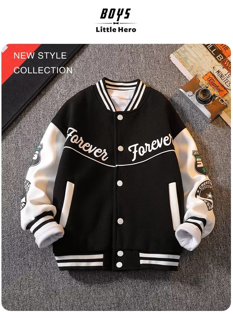 소년 코트 아동 야구 유니폼 봄, 가을 2023 새로운 스타일 중대형 아동 스타일 가을, 겨울 의류 소년 재킷 2024