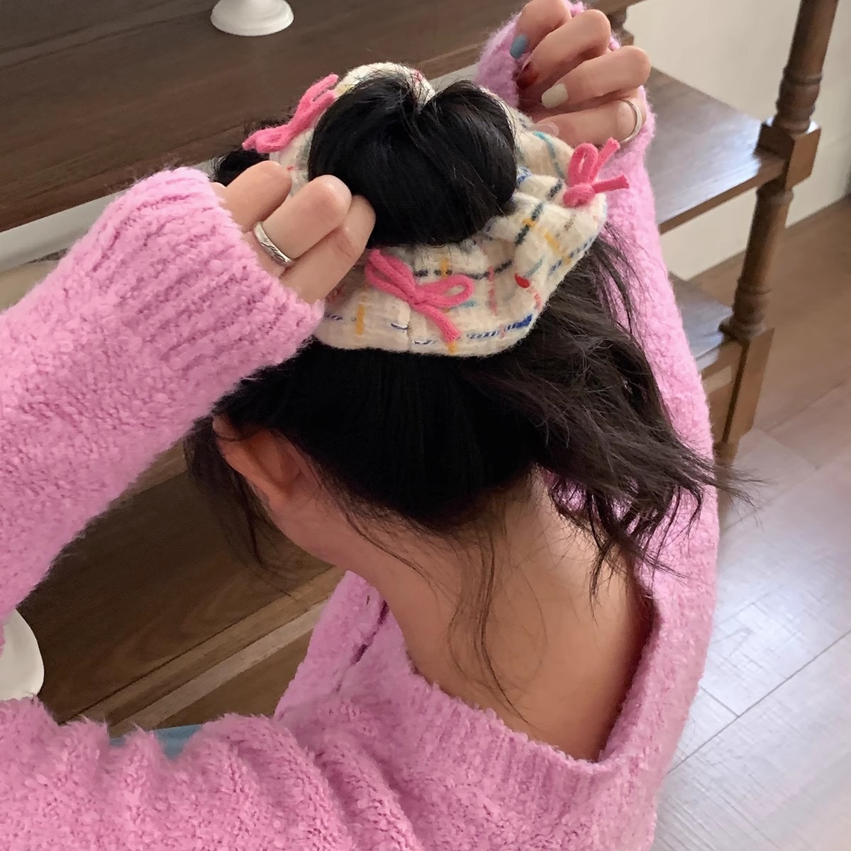 발레 스타일 연인 바비 핑크 활 리본 헤어 밴드 서양식 격자 무늬 플로럴 헤어 로프 헤어 로프 대형 장 링