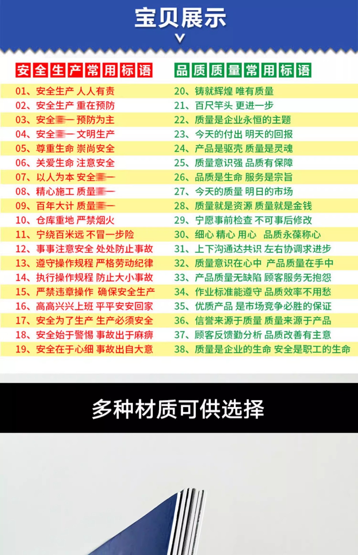 安全生产大字标语标识牌 建筑工地提示牌车间工厂企业学校警示牌