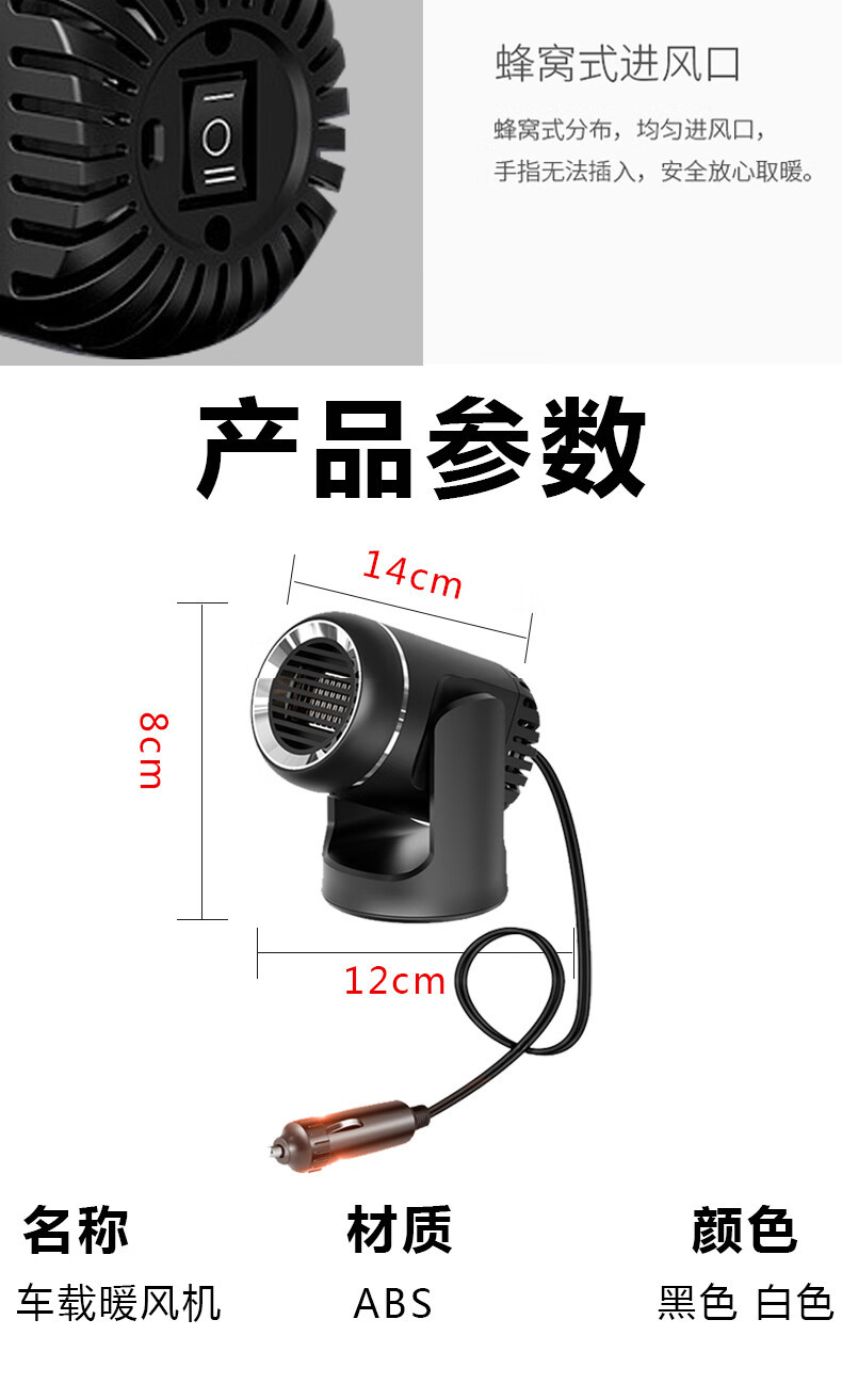 Yiqian 자동차 히터 자동차 유리 해동 및 해동 히터 자동차 12v 속도 가열 및 냉각 헤어 드라이어스토어 가기