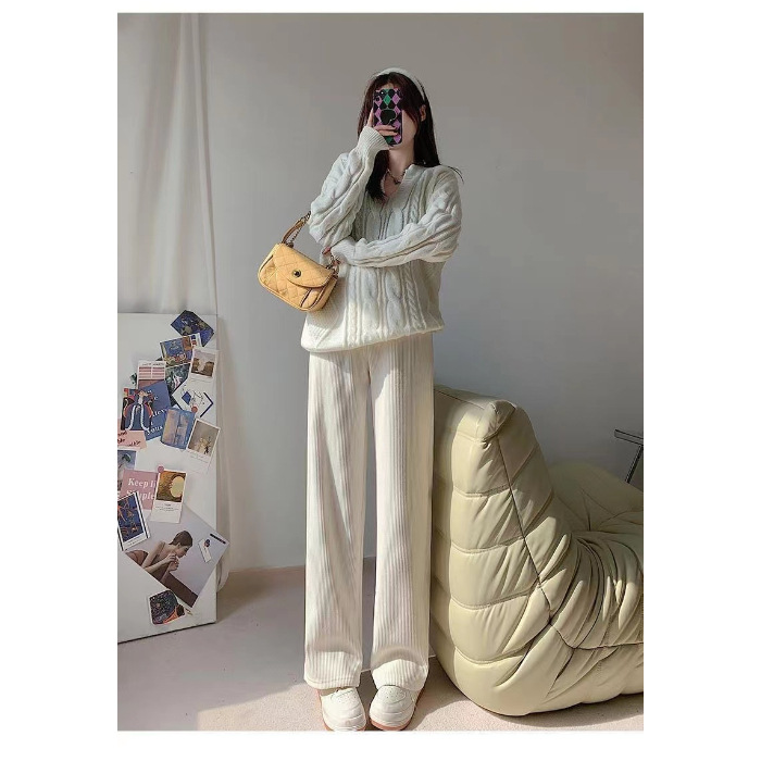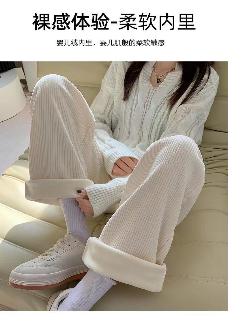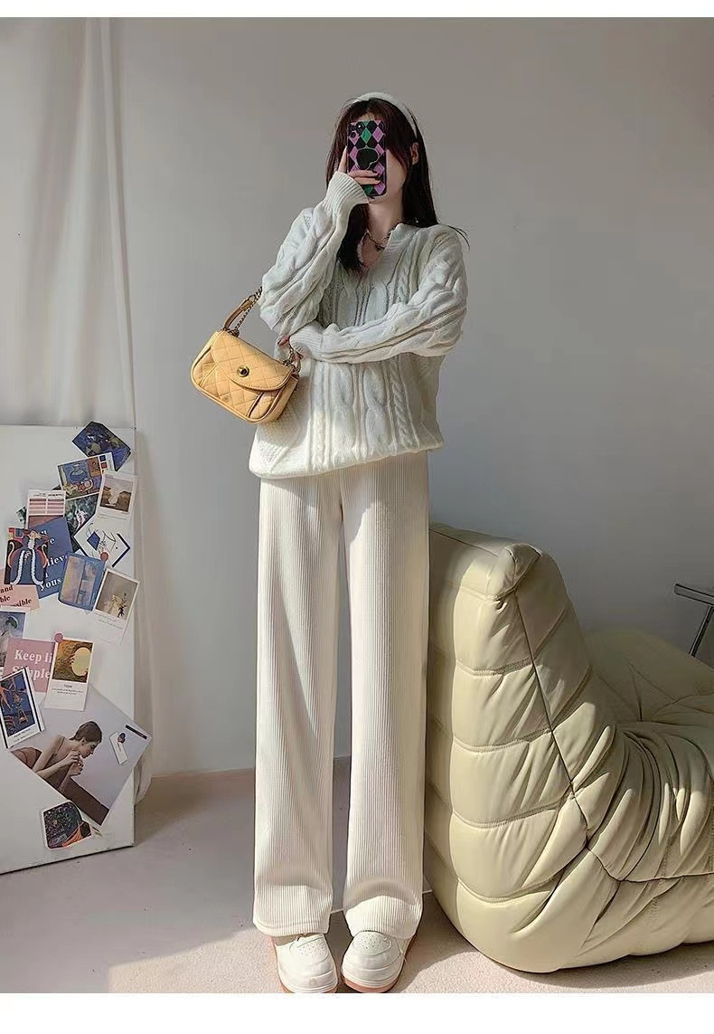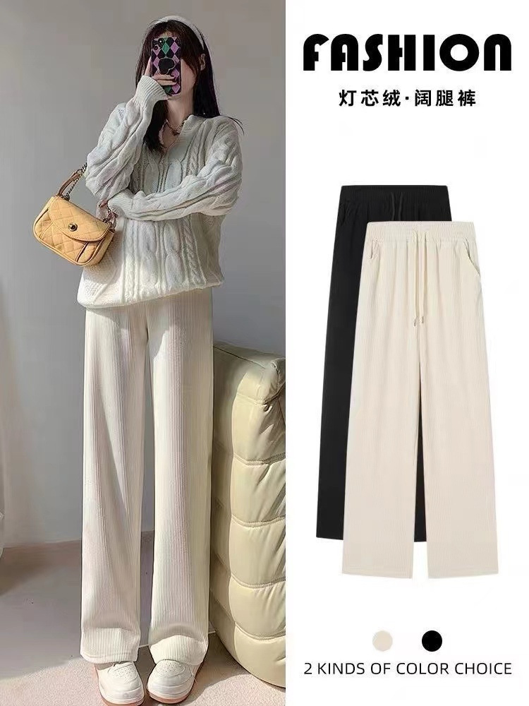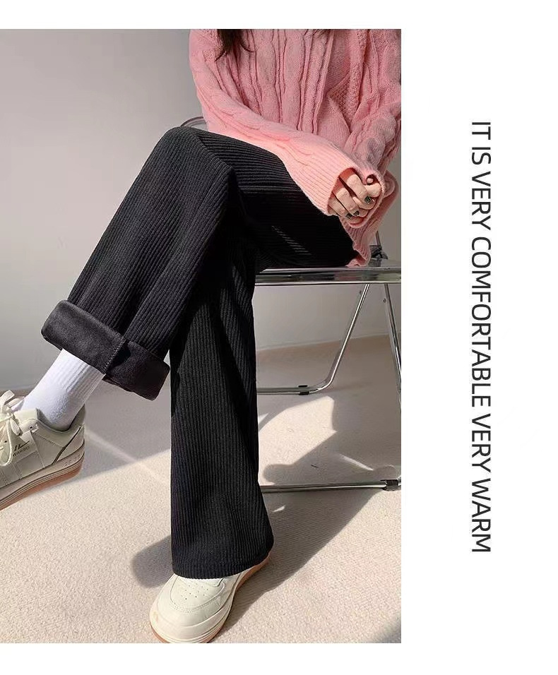 코듀로이 바지 와이드 레그 팬츠 슬리밍 인터넷 유명 인사 걸레 바지 느슨한 아빠 바지 캐주얼 바지 가을과 겨울 얇은 기모스토어 가기