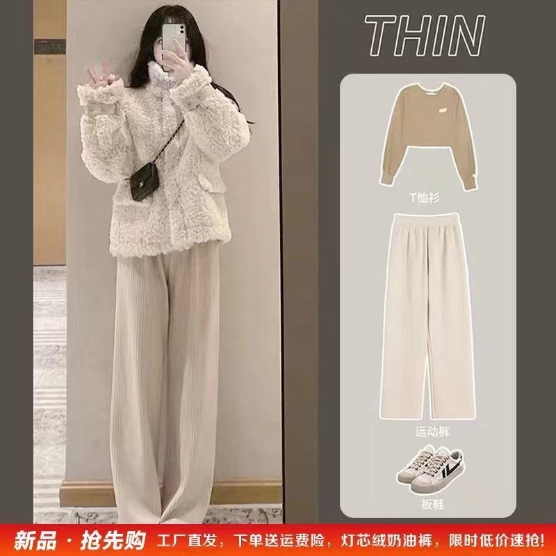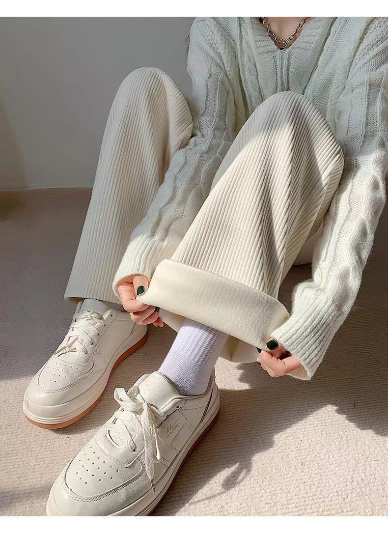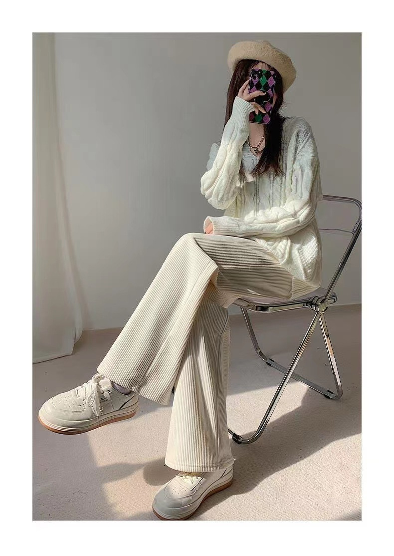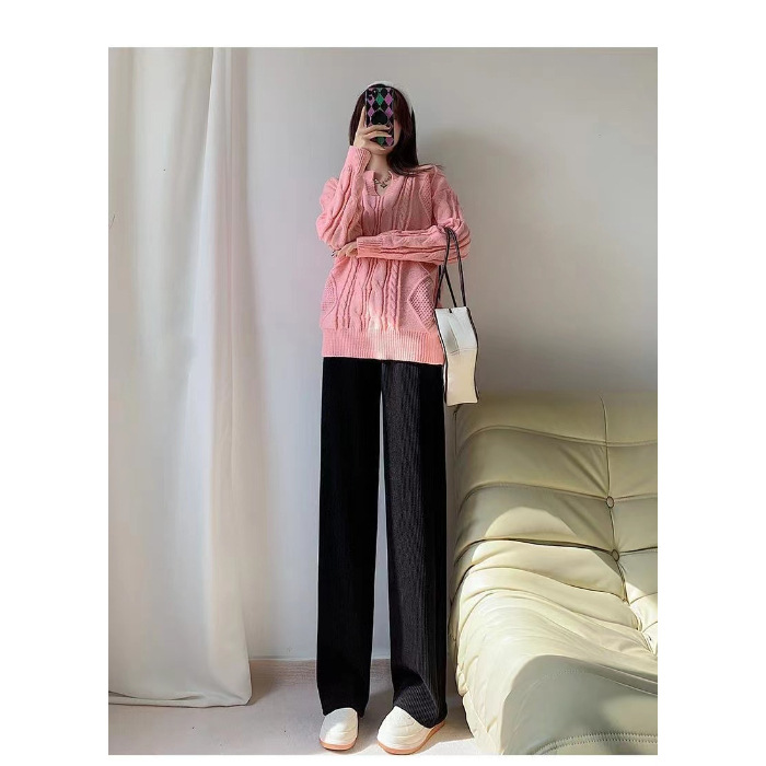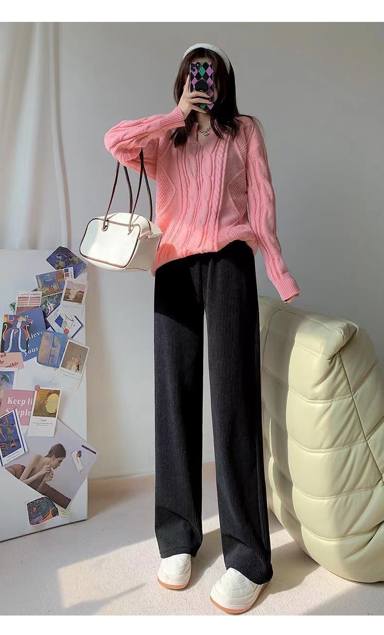 코듀로이 바지 와이드 레그 팬츠 슬리밍 인터넷 유명 인사 걸레 바지 느슨한 아빠 바지 캐주얼 바지 가을과 겨울 얇은 기모스토어 가기