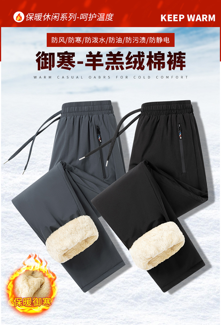 두꺼운 양고기 양털 남성면 바지 대형 따뜻한 캐주얼 바지 남성용 느슨한 기모 바지 방수 방풍 바지 남성용