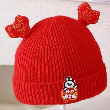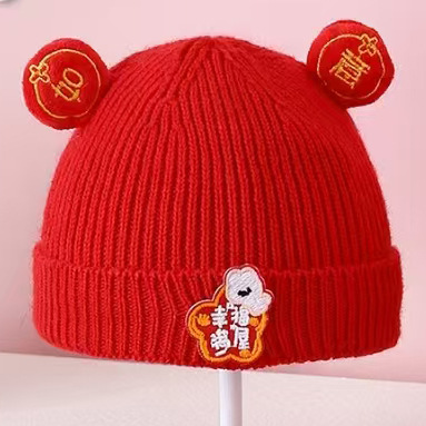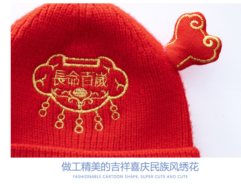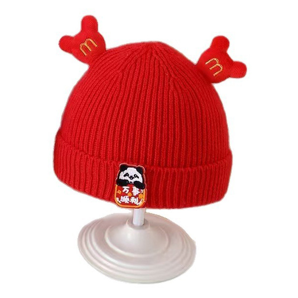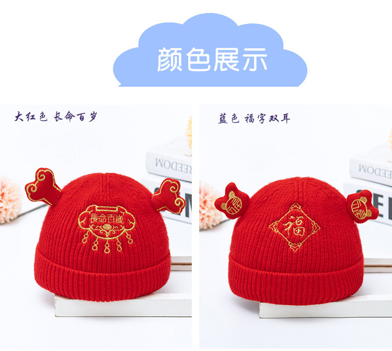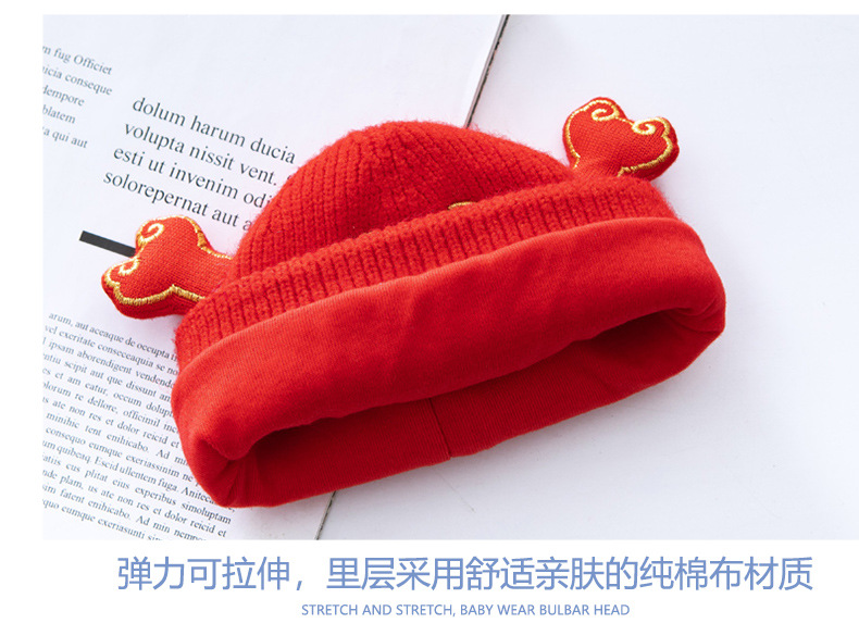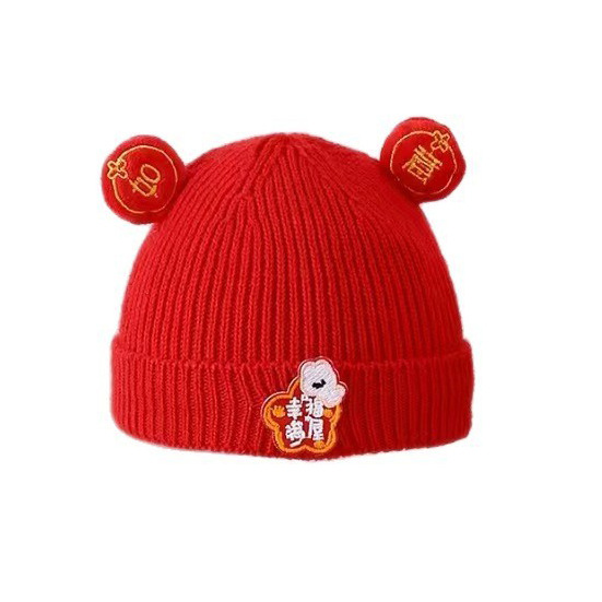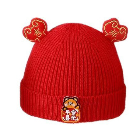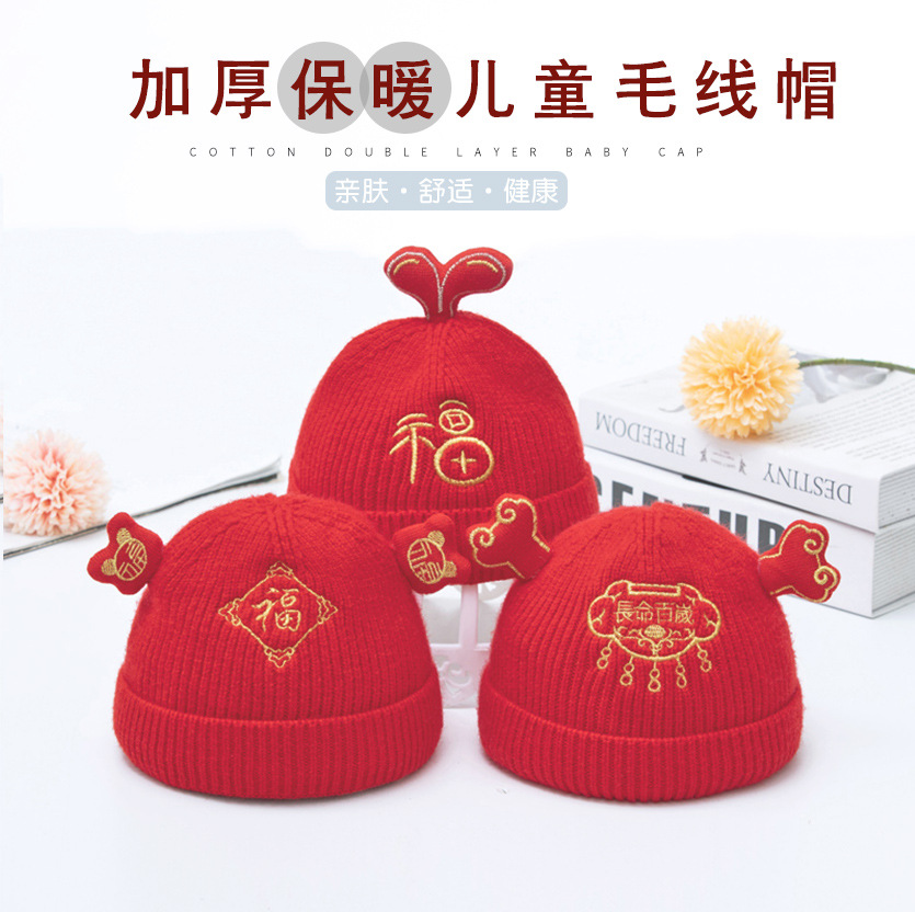아기 양모 모자 두껍게 따뜻한 신생아 모자 겨울 0-1 세 패션 국가 스타일 빨간 아기 니트 모자