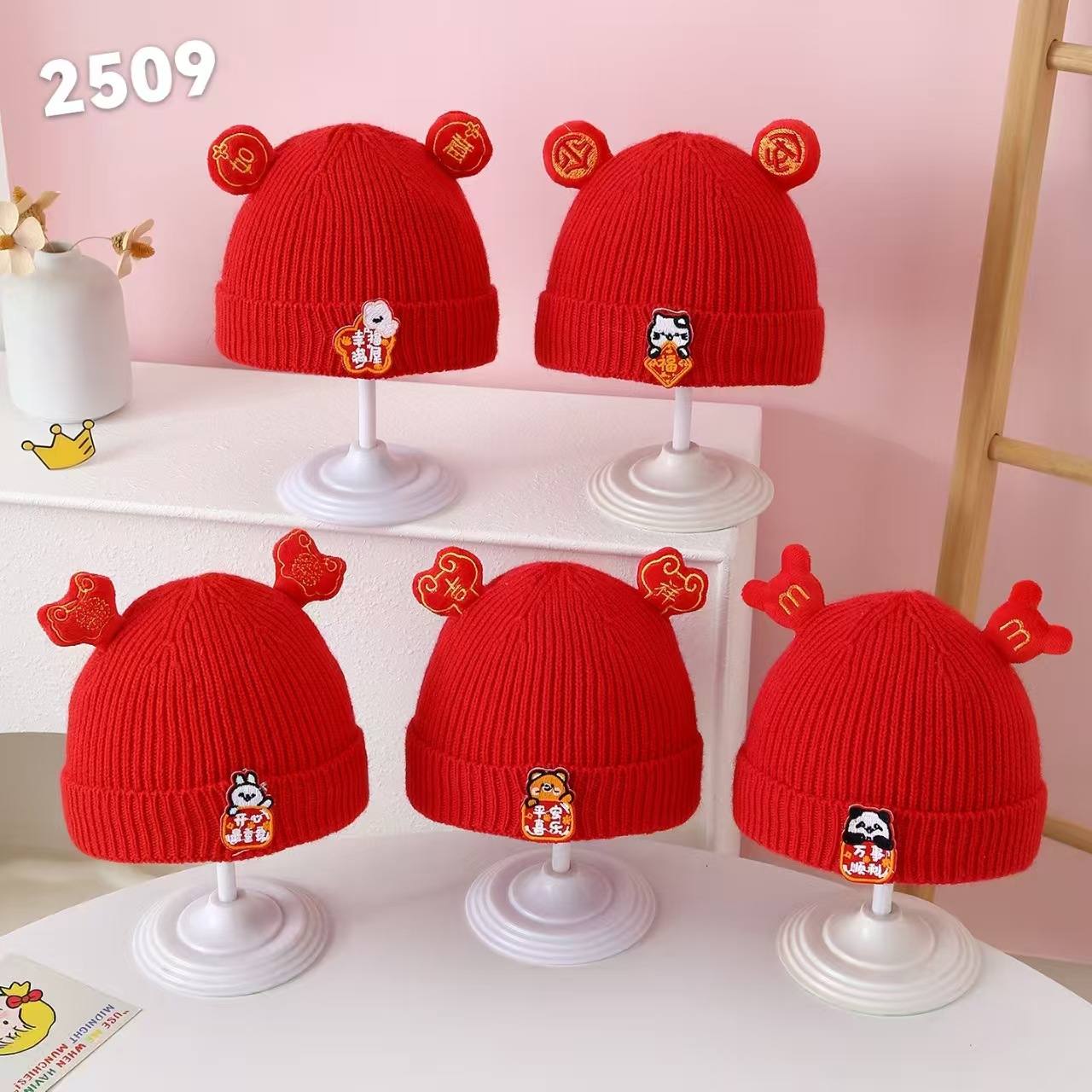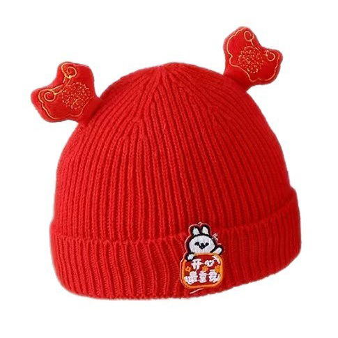 • 큰 빨간 축복 캐릭터 [라벨이 붙은 두꺼운 모직 모자]