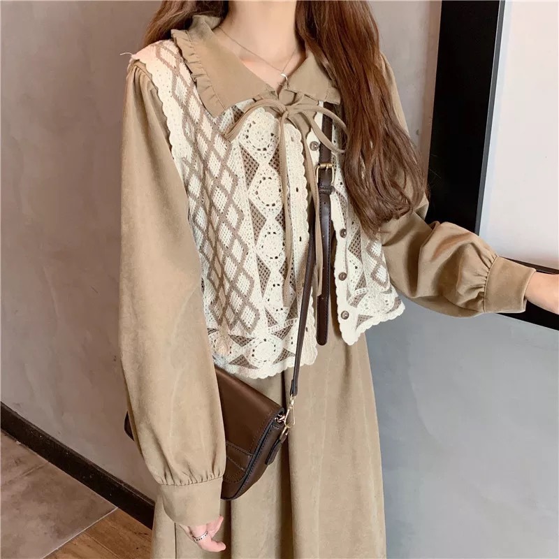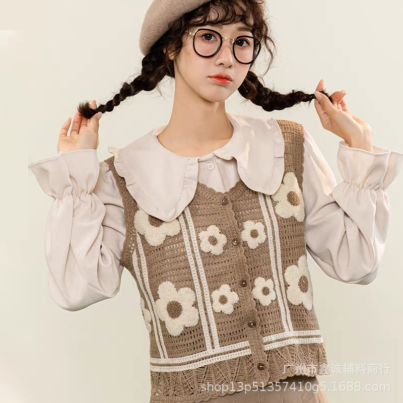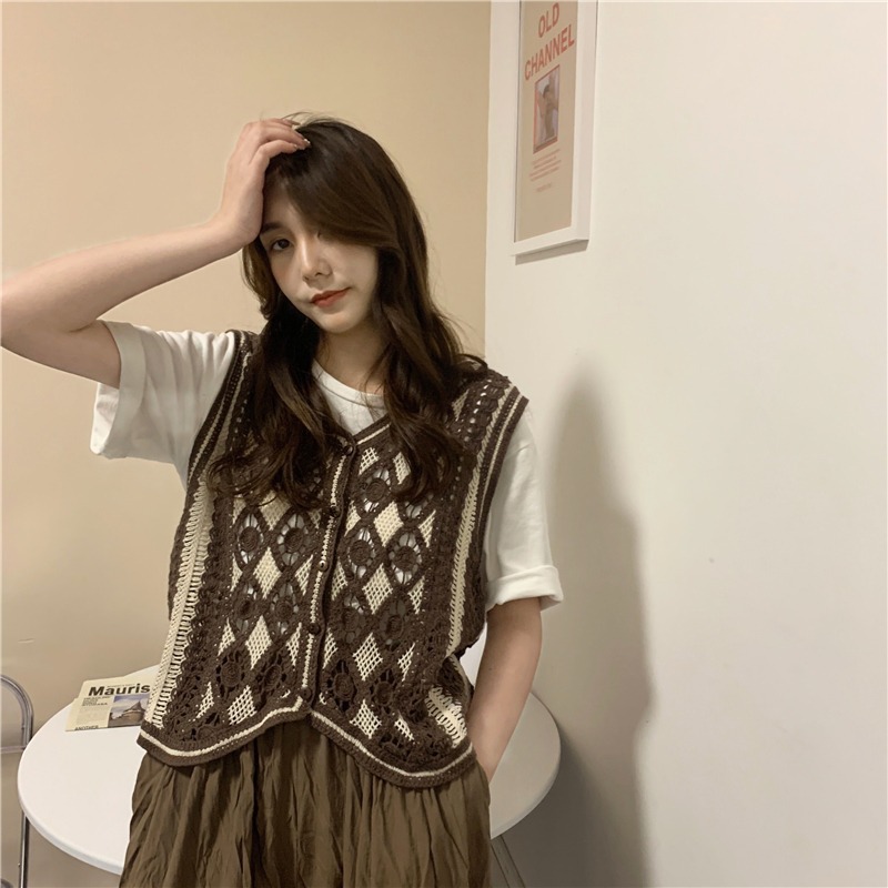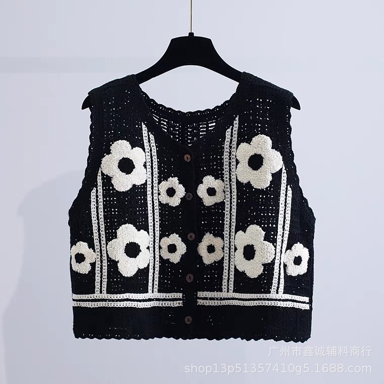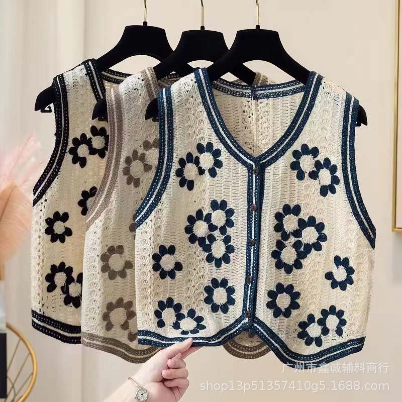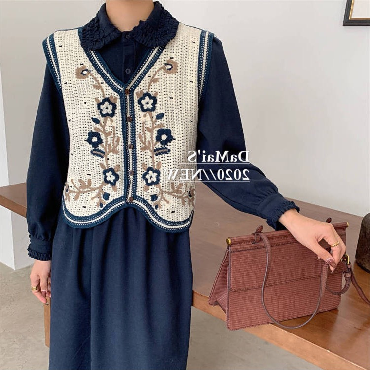 새로운 한국식 니트 조끼 여성용 빈티지 자수 뜨개질 스웨터 웨이스트 코트 베스트 민소매 코트 봄과 여름스토어 가기