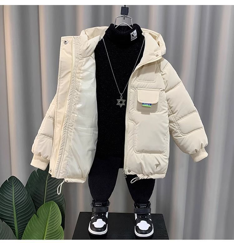 트렌디 한 소년 작업복 코튼 패딩 코트 겨울 뉴 겨울 다운 코튼 패딩 코트 중 및 큰 어린이를위한 플러스 벨벳 코트가 두껍게 유행했습니다.스토어 가기
