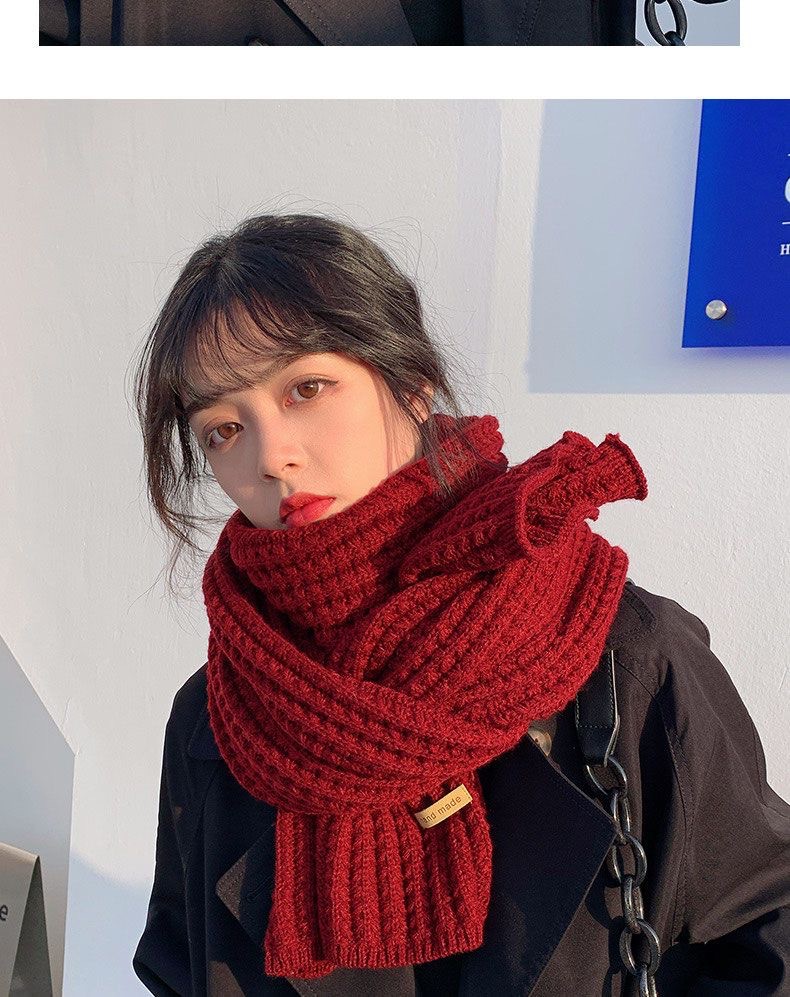 인하라주쿠 스타일 울 니트 스카프 여성의 겨울 한국 스타일 귀여운 올 매치 따뜻한 일본식 학생 단색 스카프