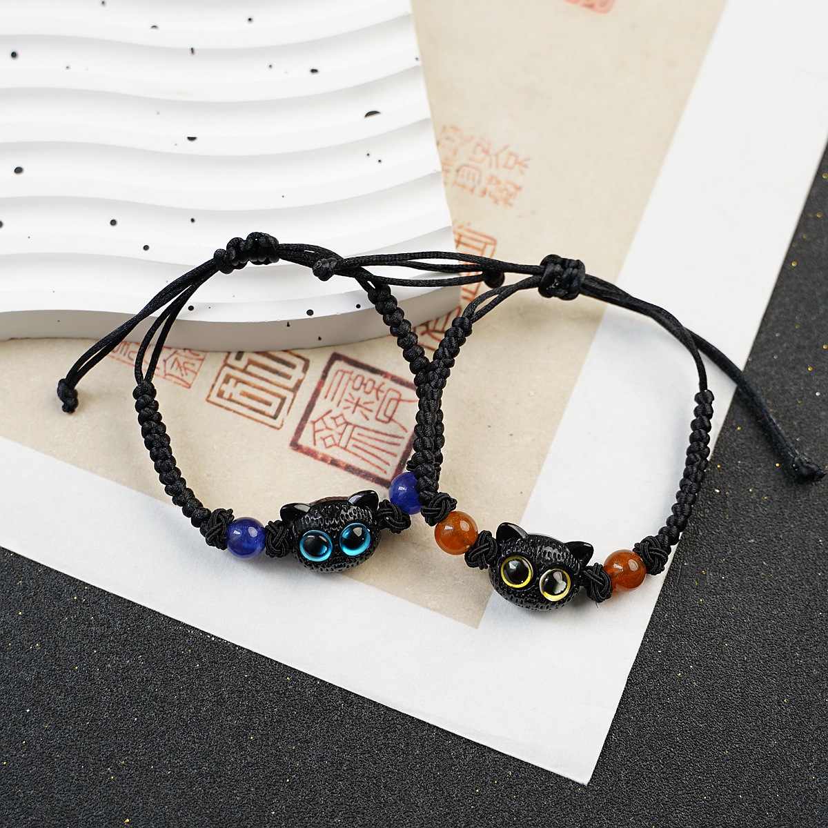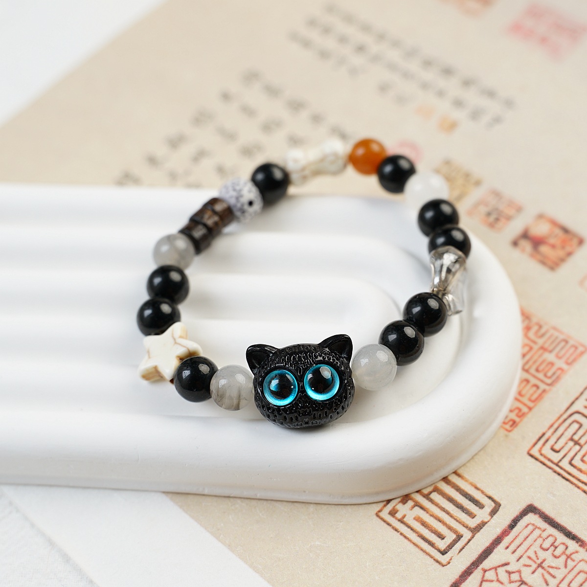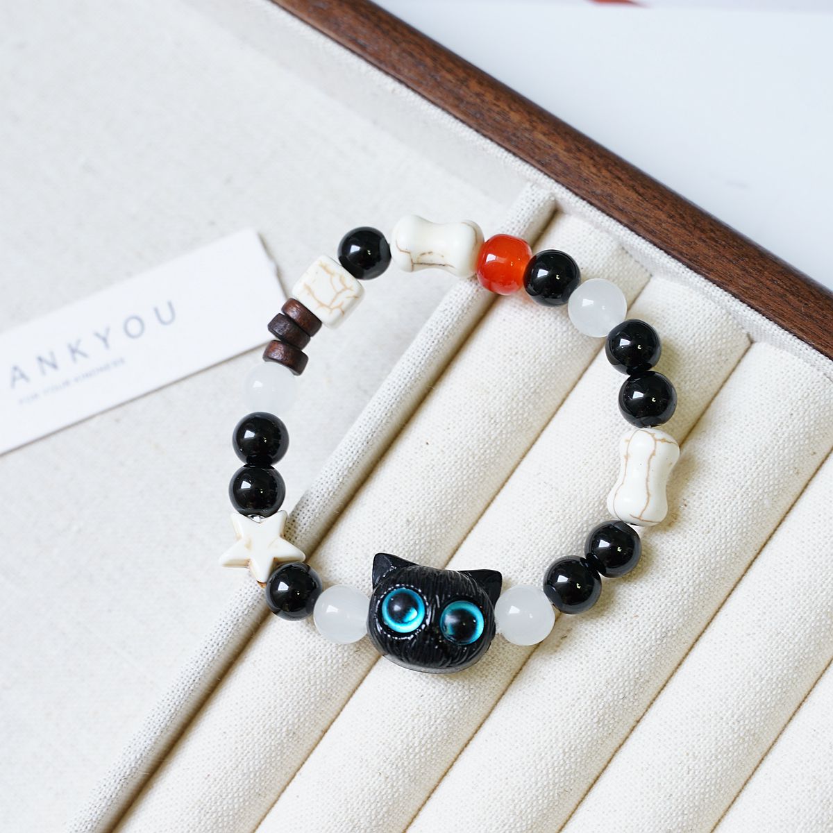2024 새로운 작은 빨간 책 같은 스타일 귀여운 고양이 작은 검은 팔찌 고대 스타일 팔찌 귀여운 복고풍 팔찌 공장 제품 도매스토어 가기