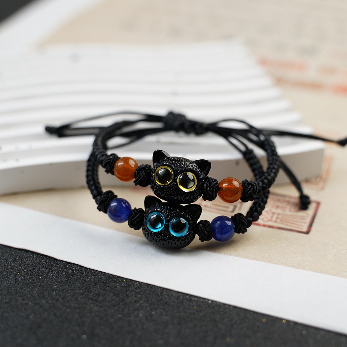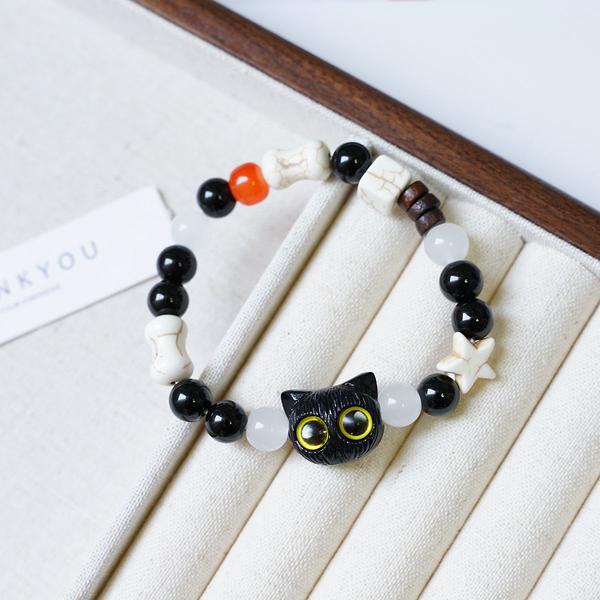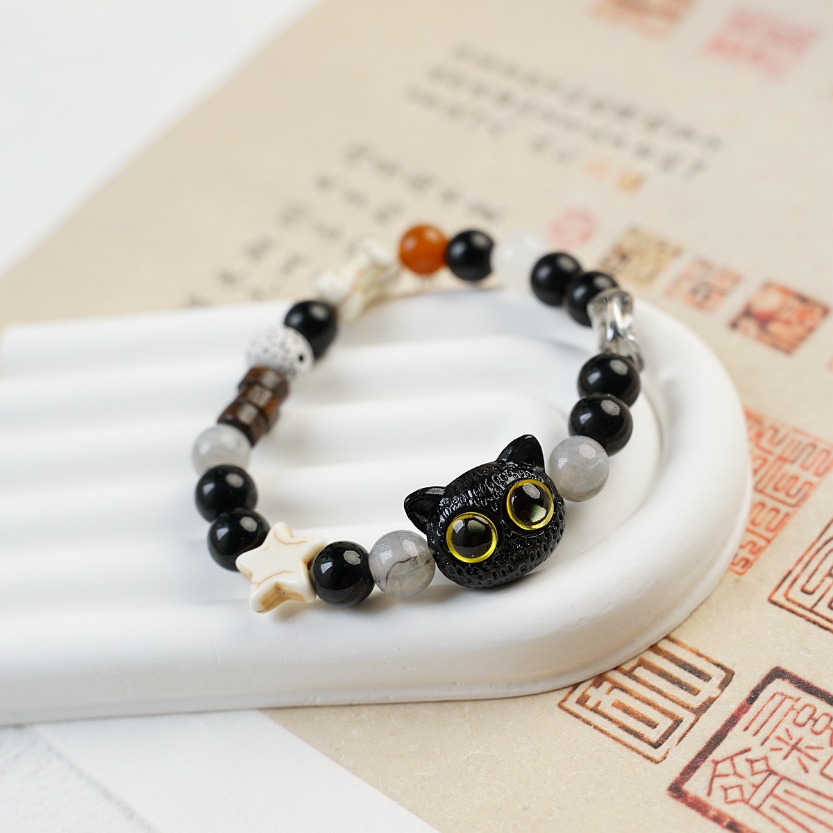 2024 새로운 작은 빨간 책 같은 스타일 귀여운 고양이 작은 검은 팔찌 고대 스타일 팔찌 귀여운 복고풍 팔찌 공장 제품 도매스토어 가기