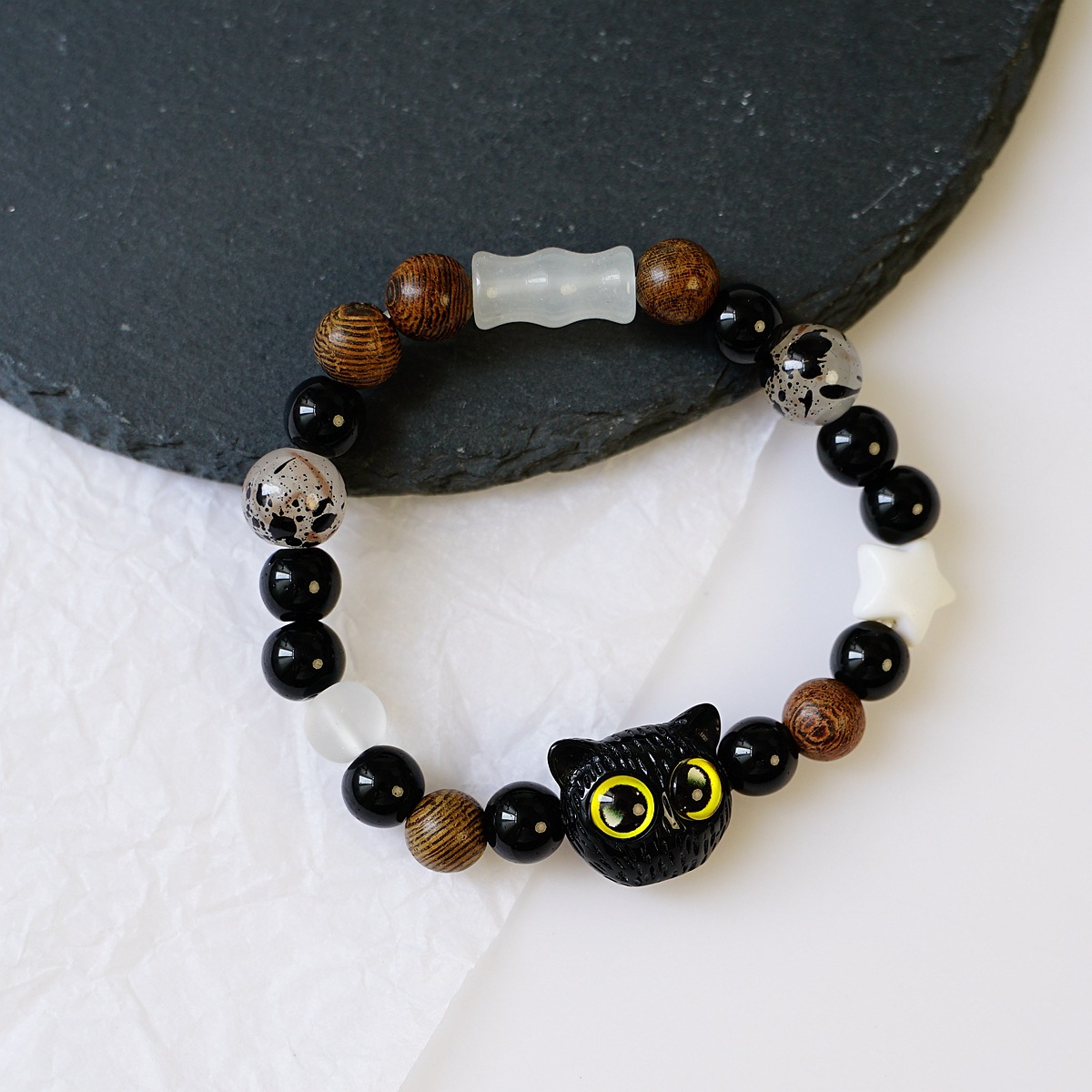 2024 새로운 작은 빨간 책 같은 스타일 귀여운 고양이 작은 검은 팔찌 고대 스타일 팔찌 귀여운 복고풍 팔찌 공장 제품 도매