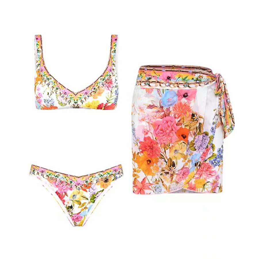 2023 Amazon AliExpress 유럽과 미국의 새로운 프린트 숄더 원피스 수영복 여성용 비치 세트 스커트 국경 간 공급스토어 가기