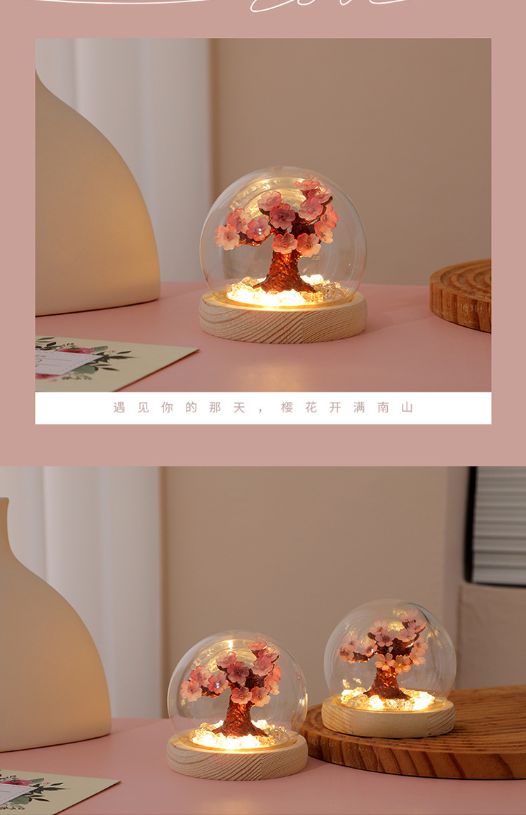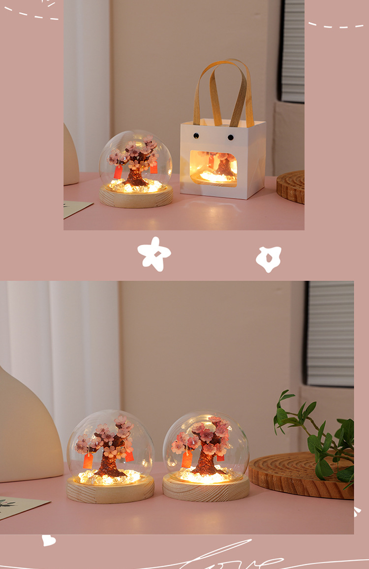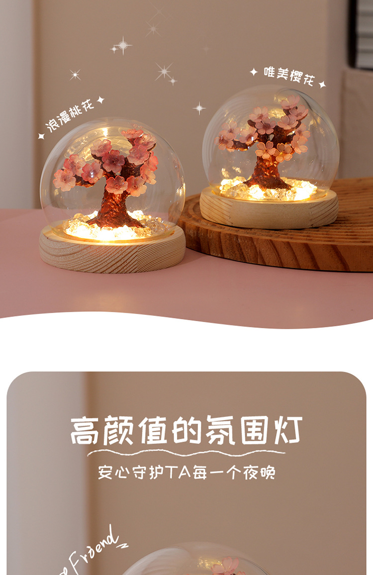 창조적 인 DIY 수제 체리 트리 데스크탑 침실 분위기 빛나는 야간 조명 장식 학생 38 여신 축제