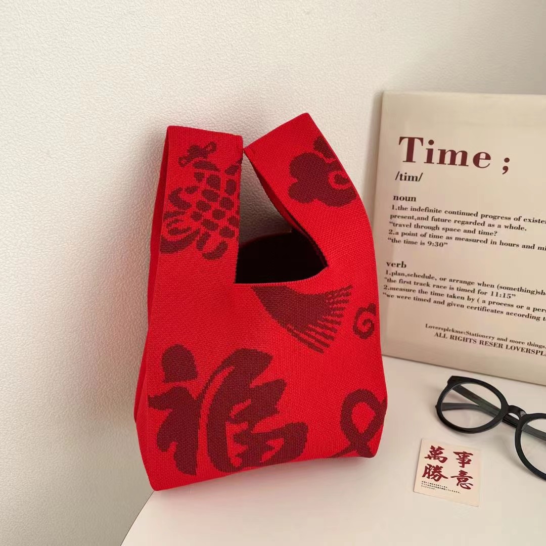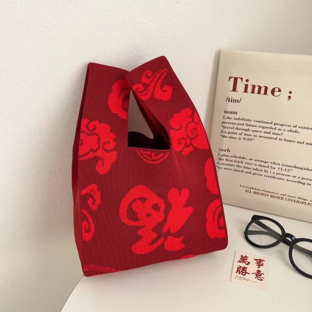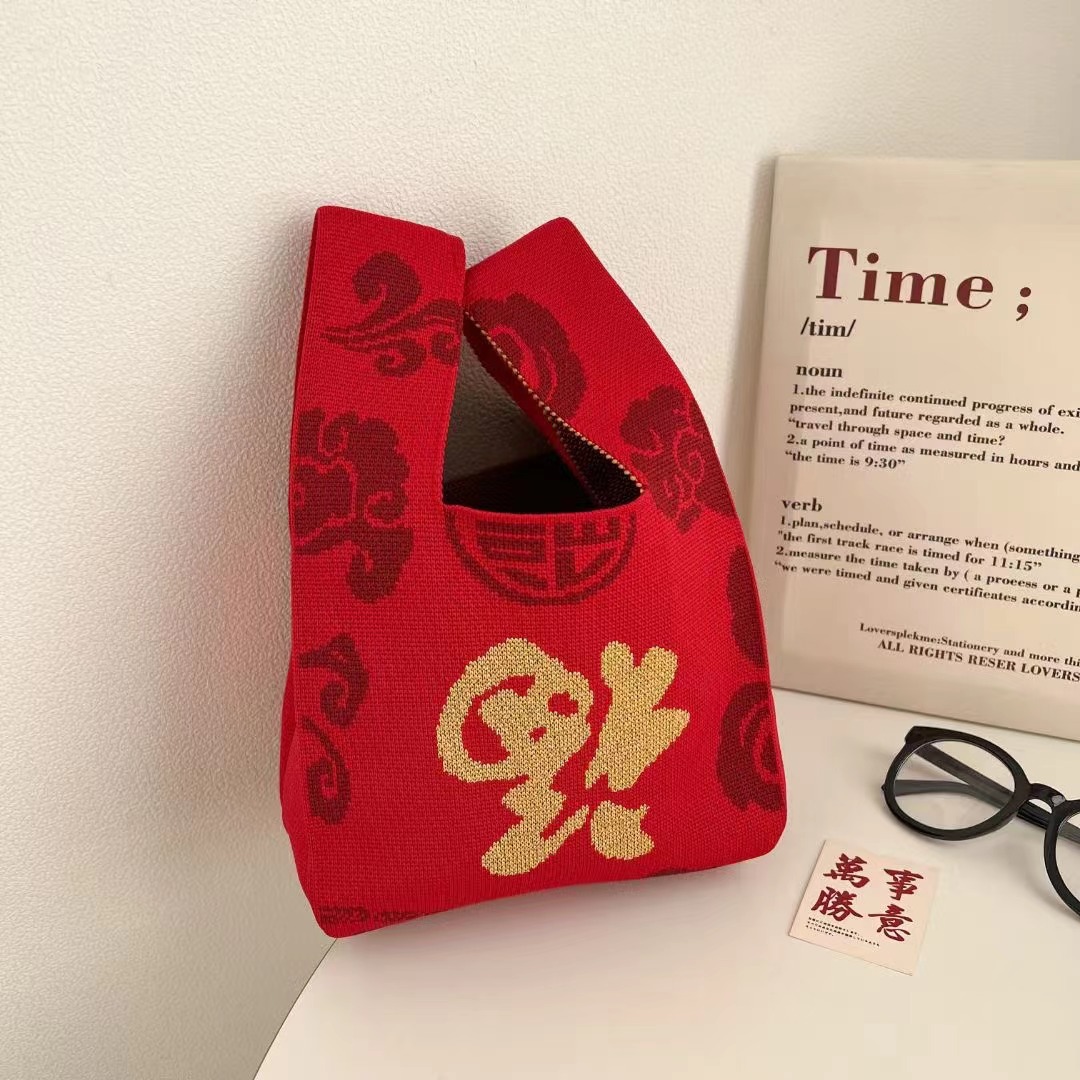2024 새해 축복 가방 회사 연례 회의 축하 손 선물 가방 로고 니트 핸드백을 만들 수 있습니다