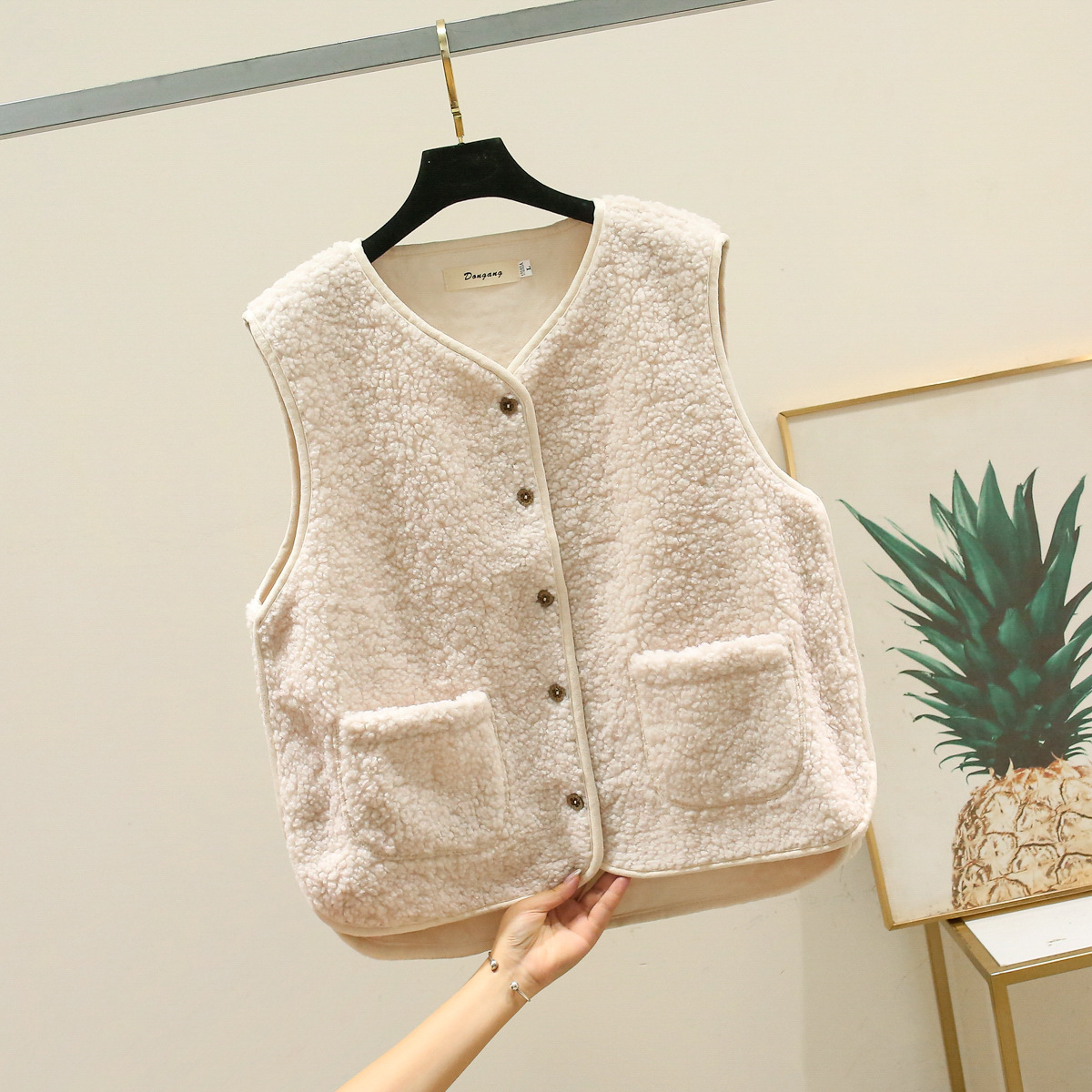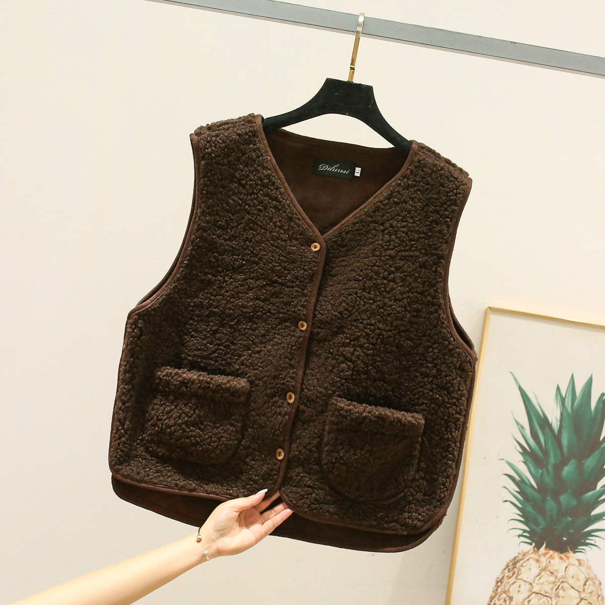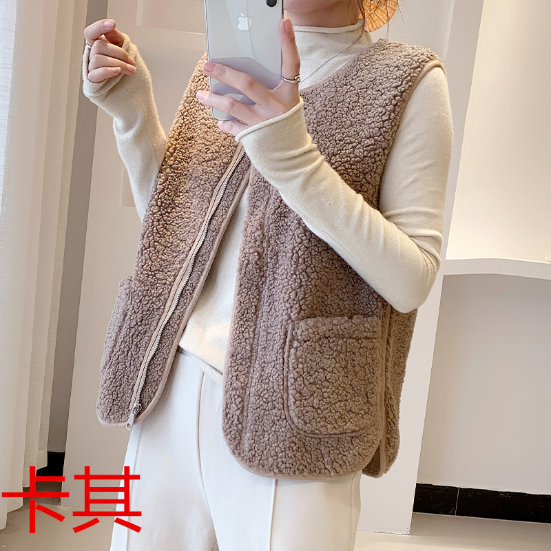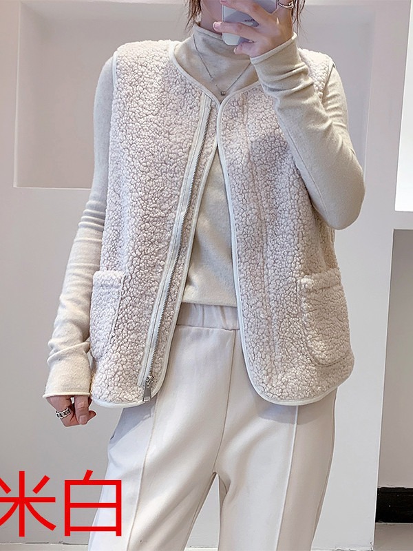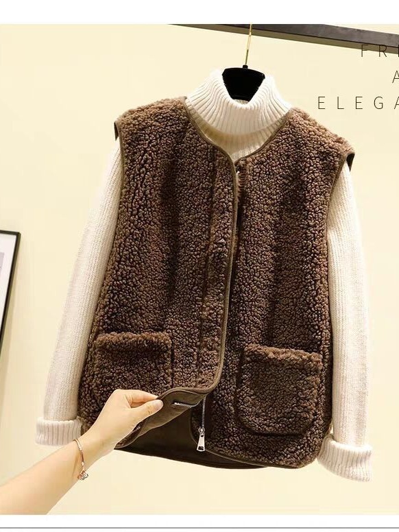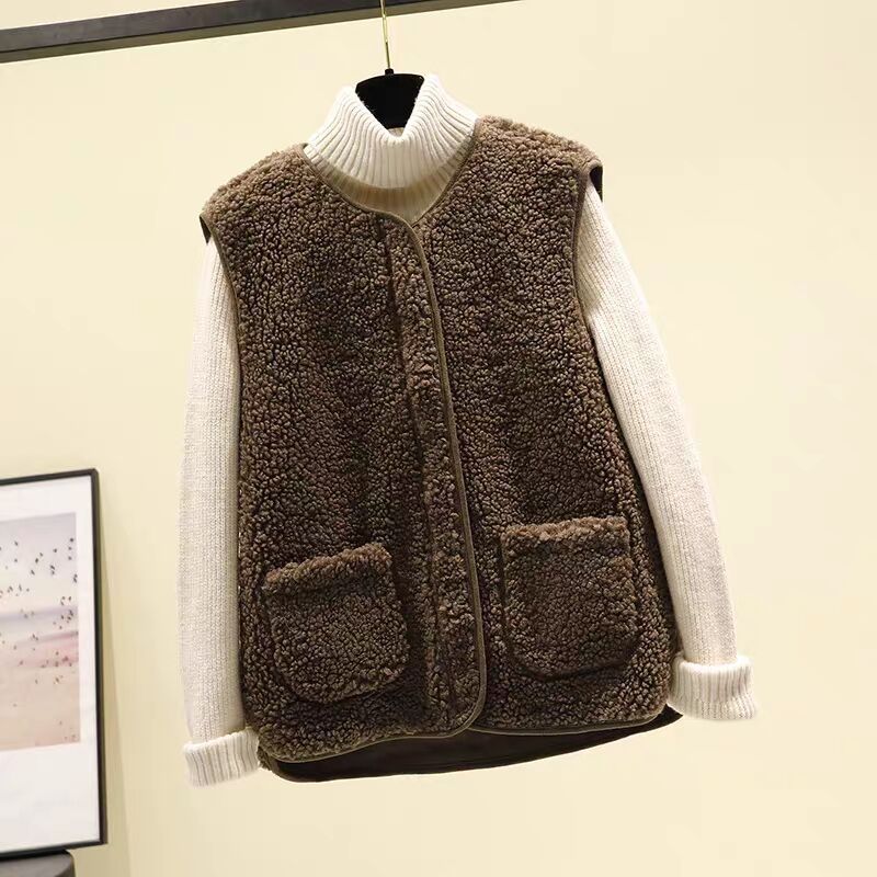 양털 조끼 여성 코트 짧은 2023 가을, 겨울 모피 통합 조끼 루즈 캐주얼 양복 조끼 일본과 한국 스타일스토어 가기