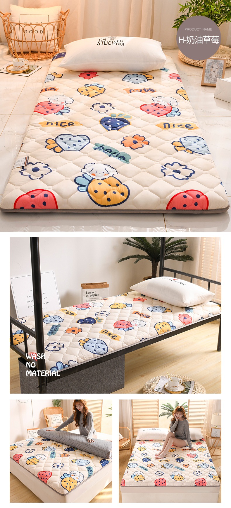 • 크림 딸기 (6cm) [사계절 피부 친화적 인 두꺼운 매트리스]]