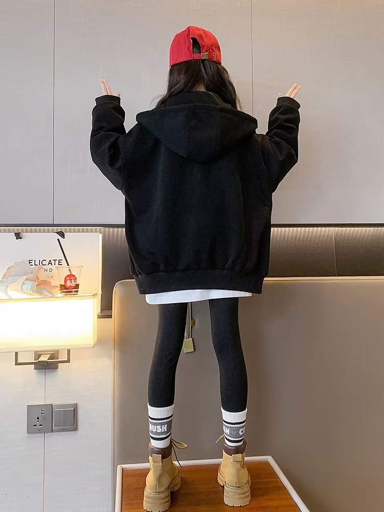 여아 코트 가을, 겨울 2023 새로운 스타일 여아 후드티, 벨벳 스웨트 셔츠, 지퍼 탑, 봄, 가을스토어 가기