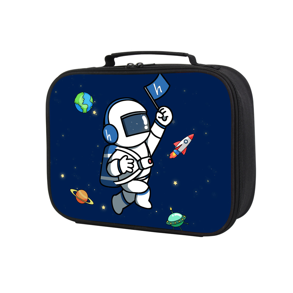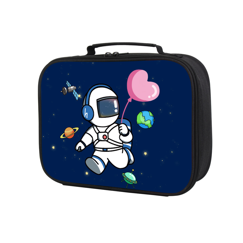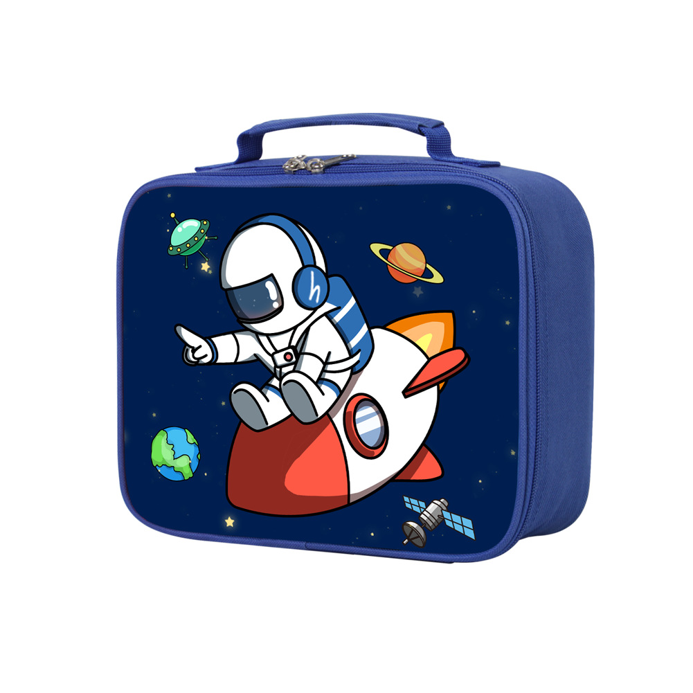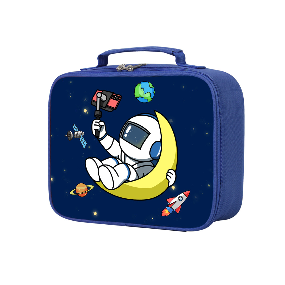 新款男孩DIY卡通宇航员午餐包 手提横版上班族便携餐包水果保鲜包