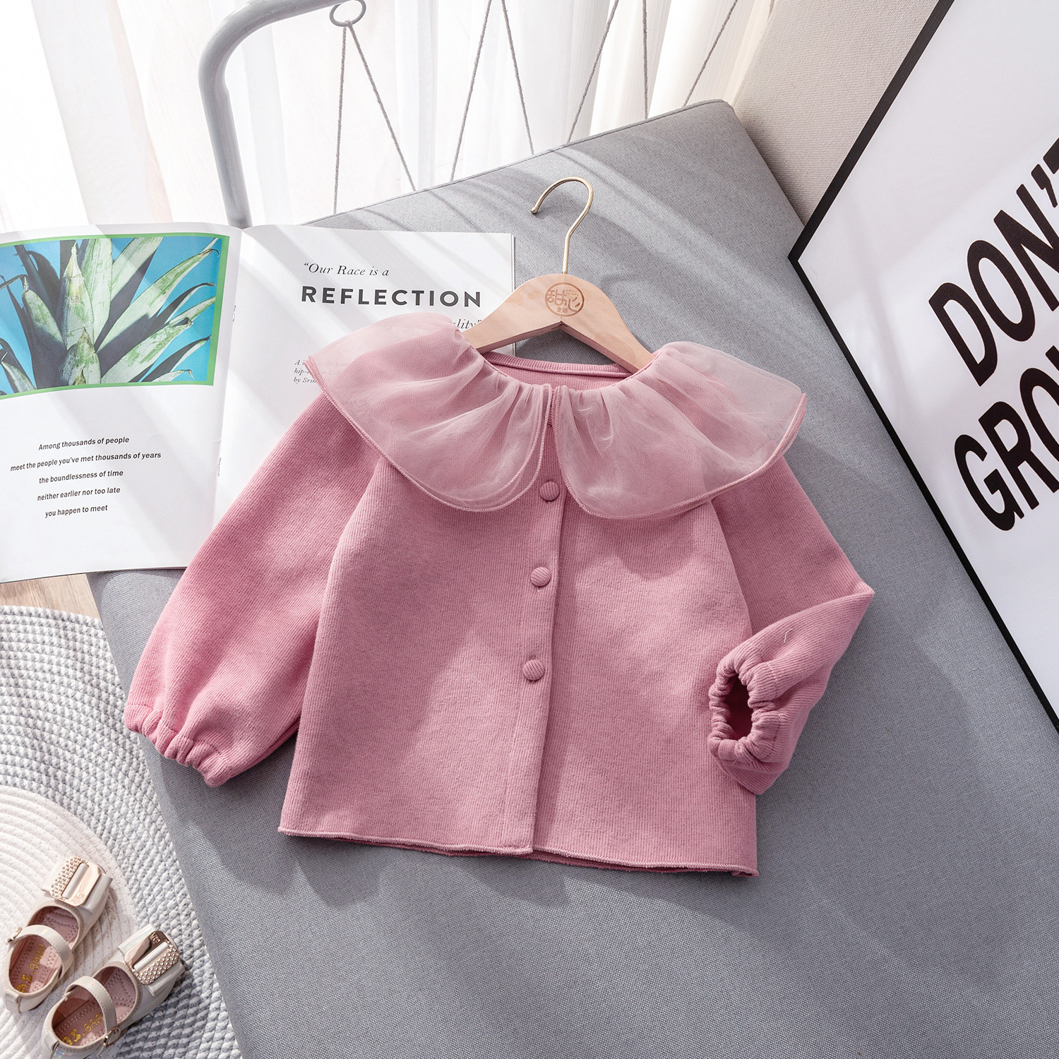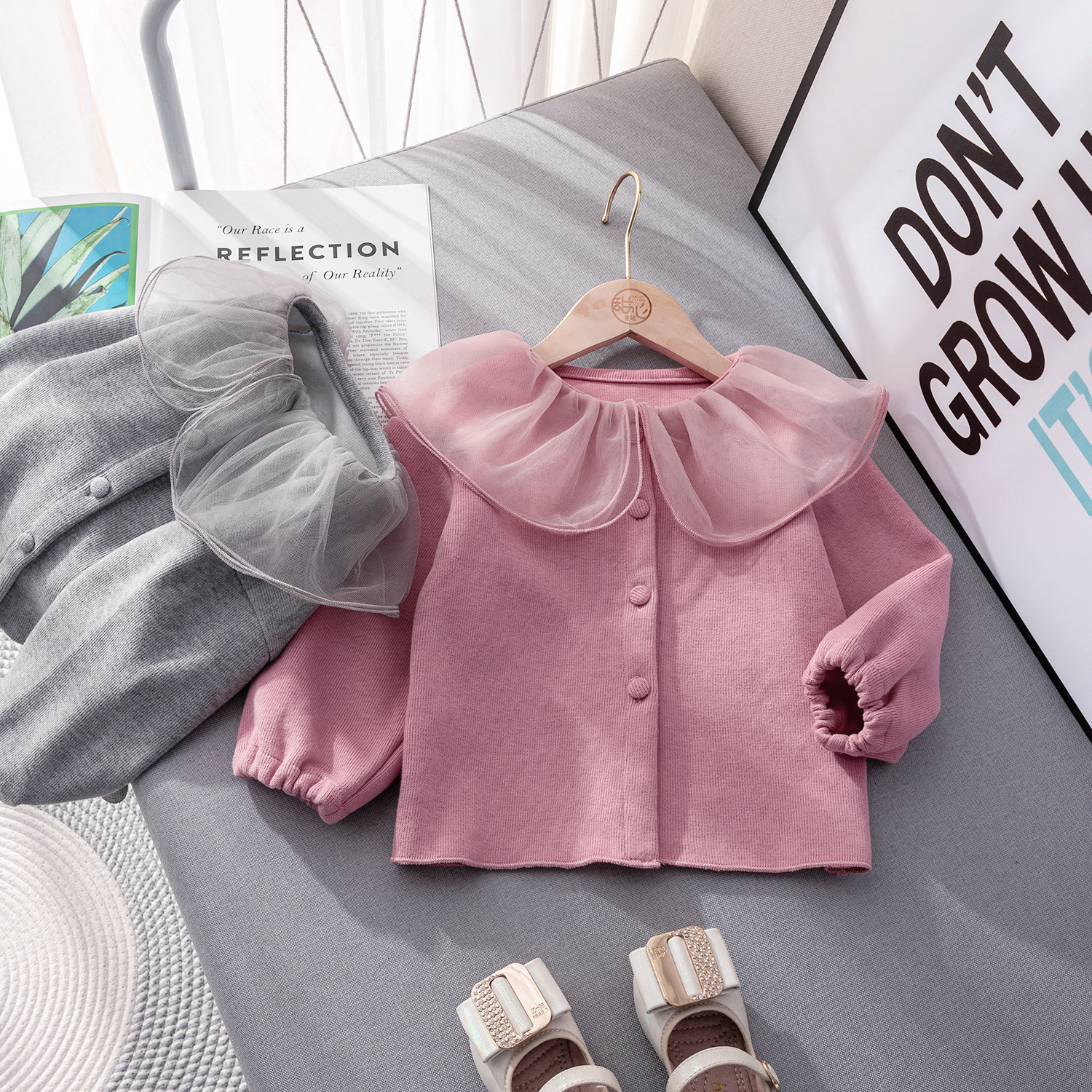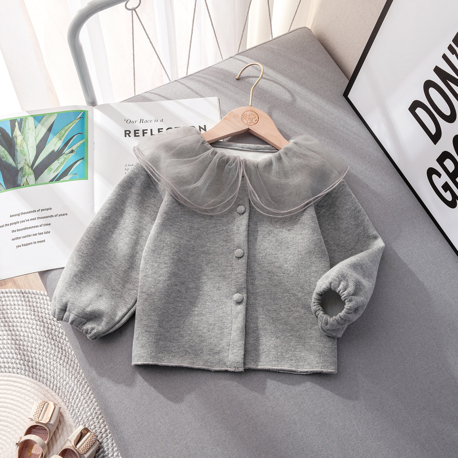 봄과 가을 소녀 코트 아기의 서양식 어린이 맞춤형 트렌디 브랜드 한국 스타일 메쉬 레이스 칼라 유행 사이버 축하 카디건스토어 가기