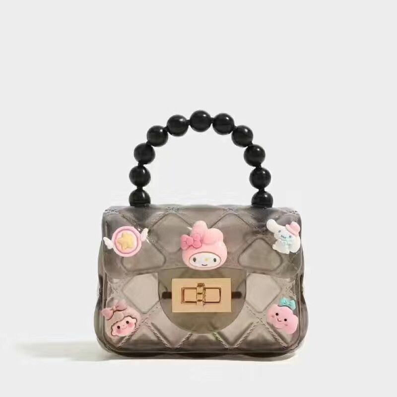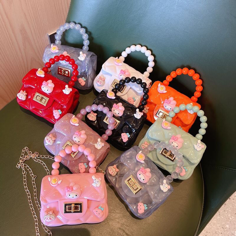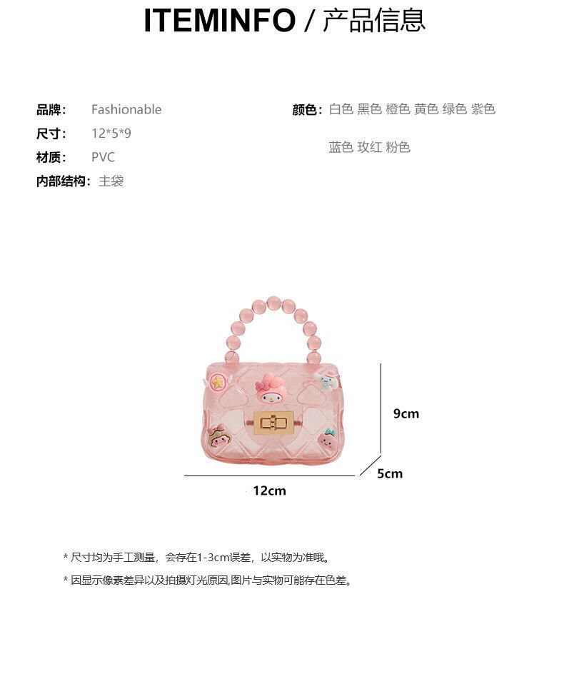 어린이 귀여운 만화 젤리 가방 PVC 다이아몬드 체인 작은 사각형 가방 작은 소녀 미니 진주 휴대용 메신저 가방