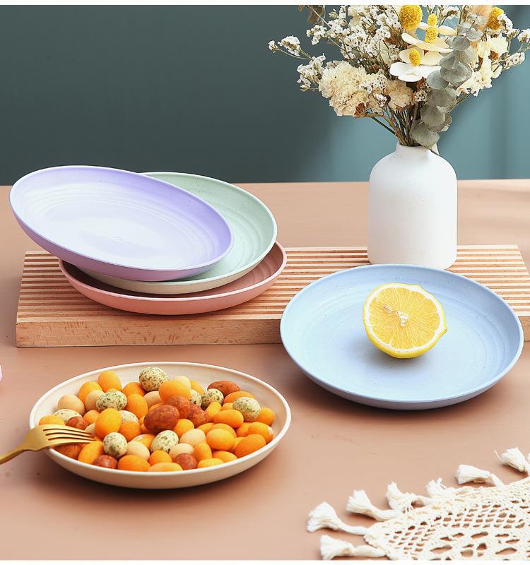 일본식 밀 밀짚 플라스틱 디너 플레이트 가구 라운드 PP 살사 디너 플레이트 경량 디너 플레이트 주방 용품