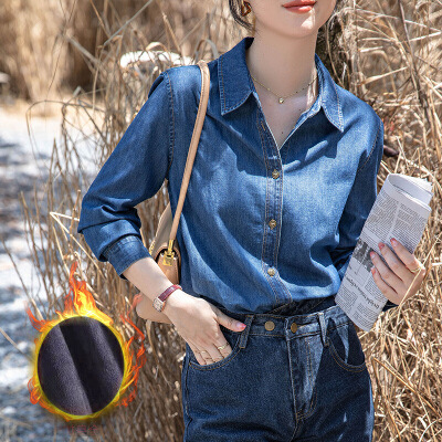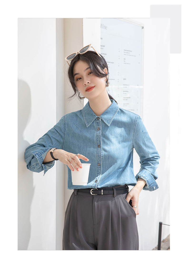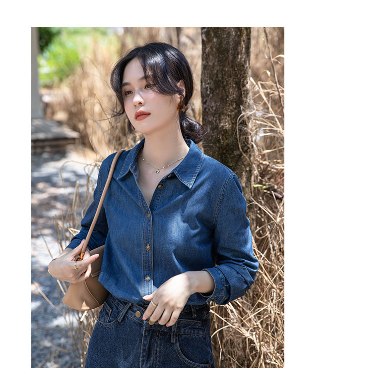 블루 데님 셔츠 여성용 2025 봄 가을 레이어드 디자인 감성적인 레트로 홍콩 스타일 루즈핏 긴팔 다용도 상의스토어 가기
