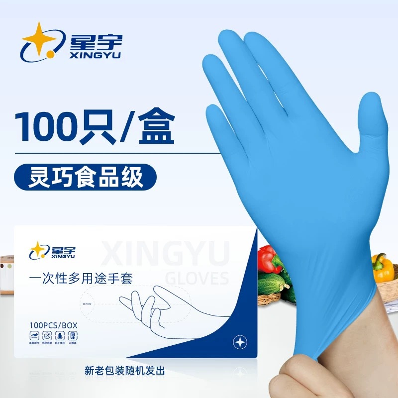 Xingyu 일회용 장갑 두껍고 튼튼한 니트릴 검사 장갑 음식 케이터링 헤어 고무 블랙 블루 의료스토어 가기