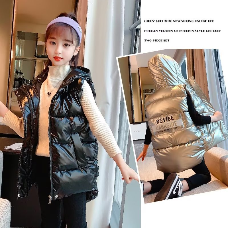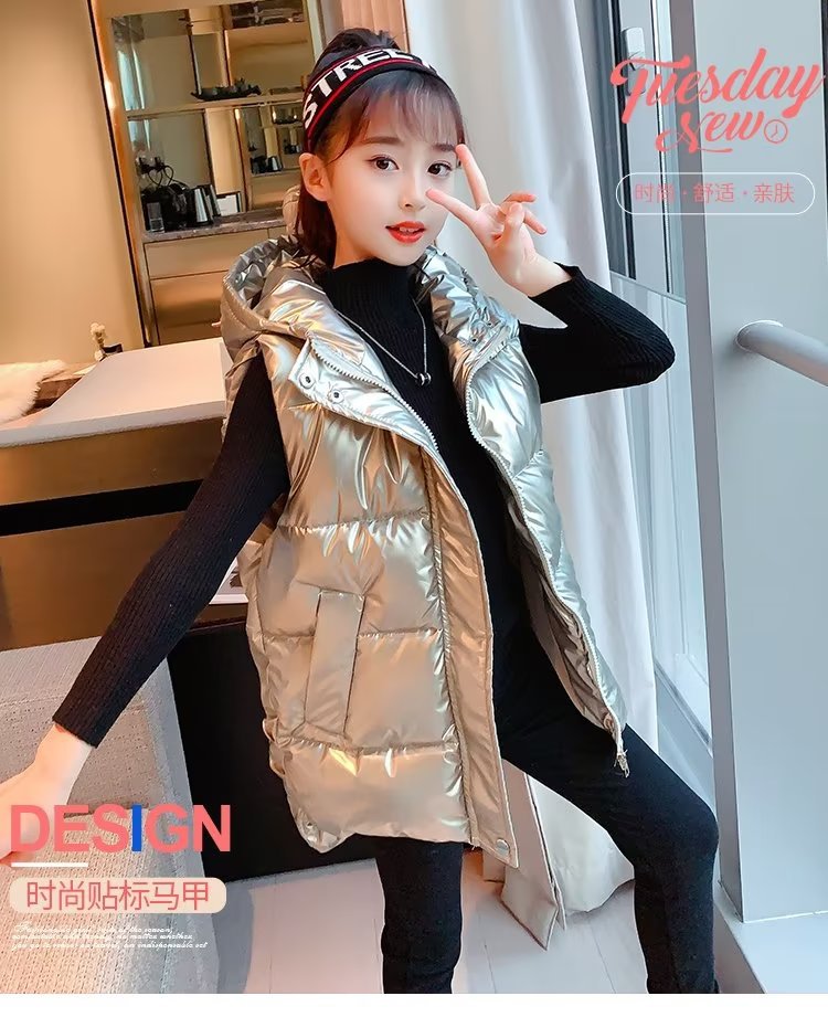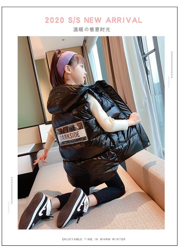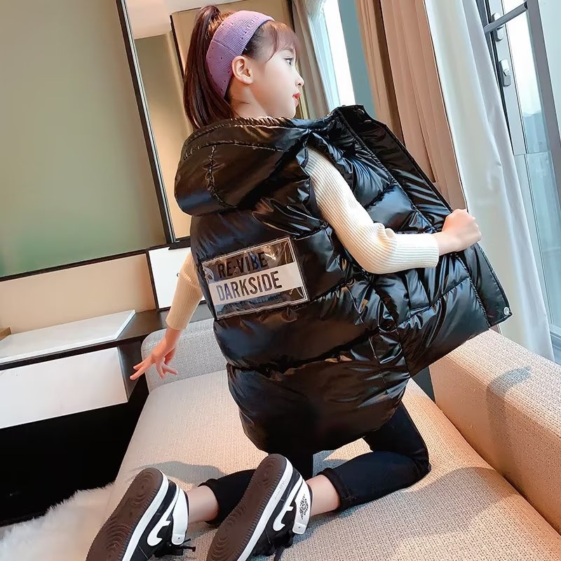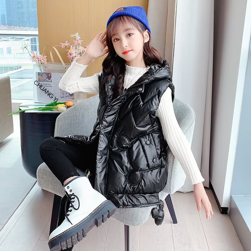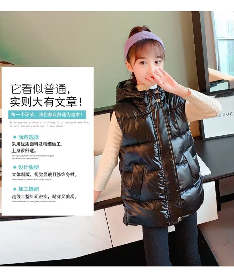 아동복 여아 다운 코튼 조끼 겉옷 2023 가을 겨울 새로운 스타일 중대형 아동 후드 조끼 두꺼운 조끼스토어 가기