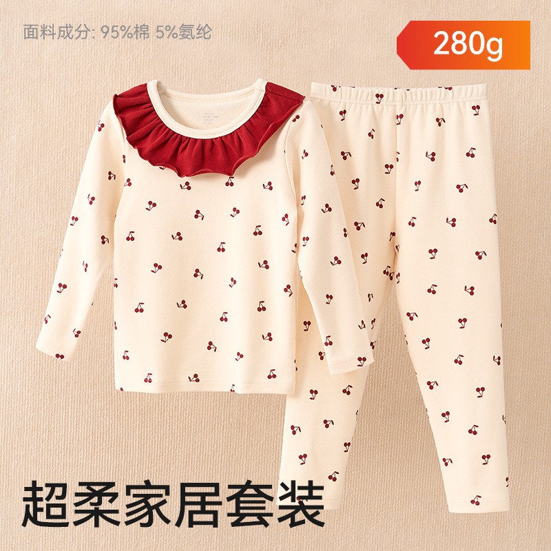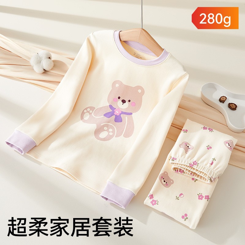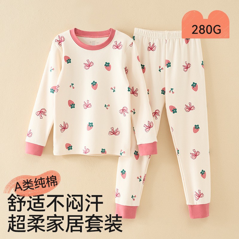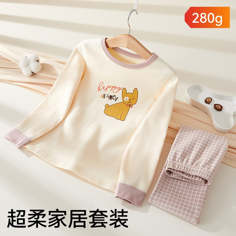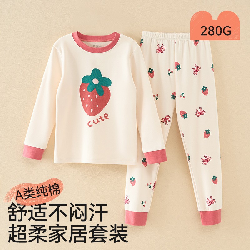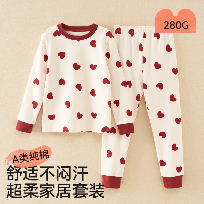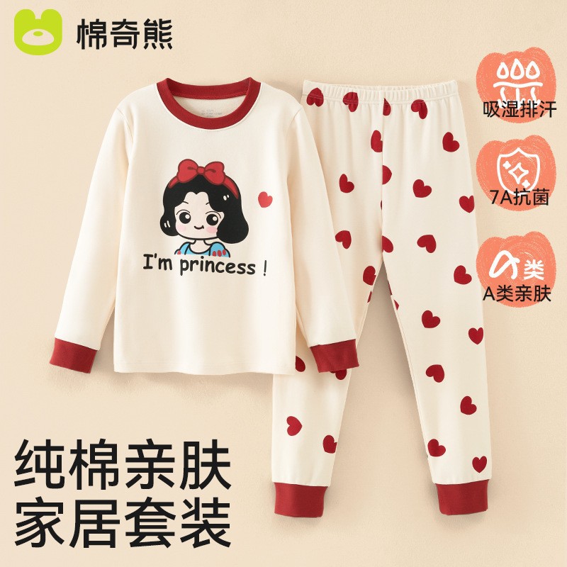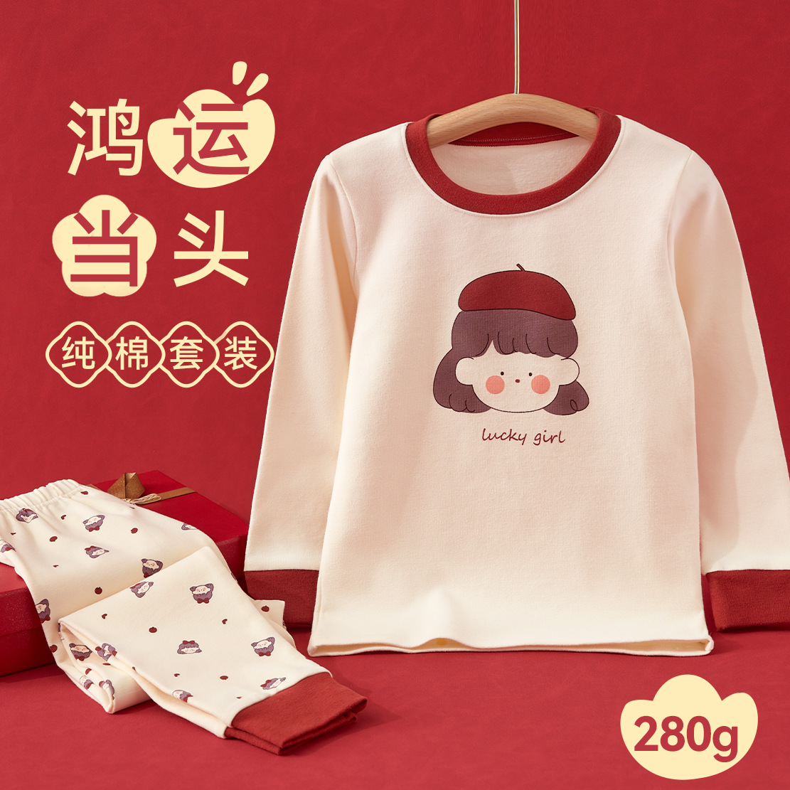 어린이 가을옷 가을바지 순면 속옷 세트 여자아이의 생년 순면 잠옷 용의 해 홈웨어 보온형