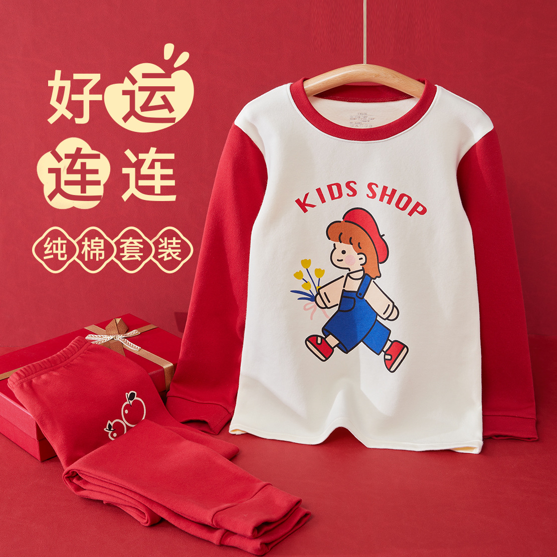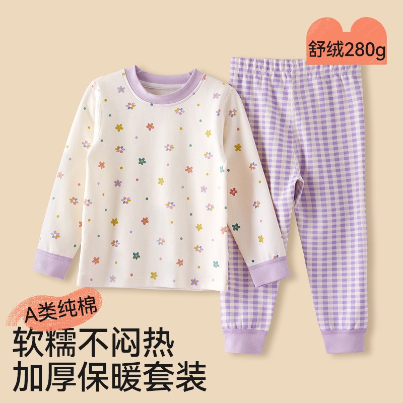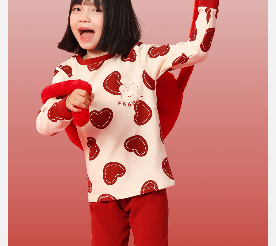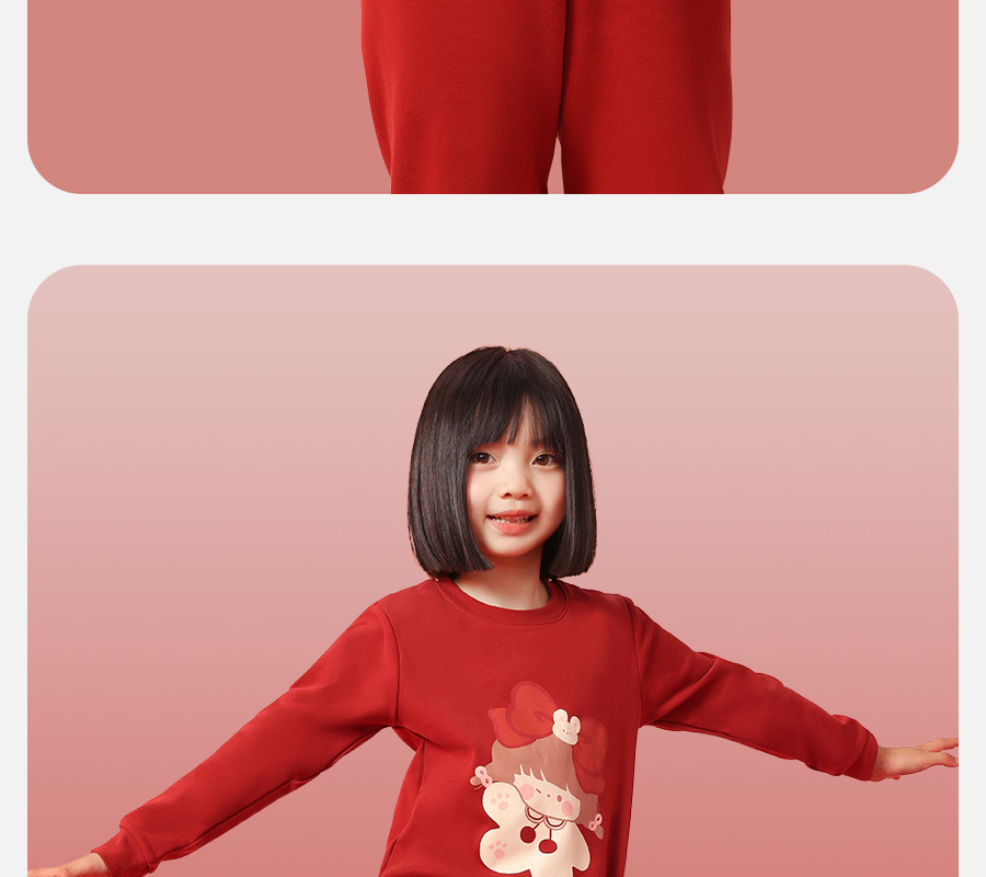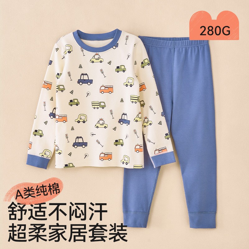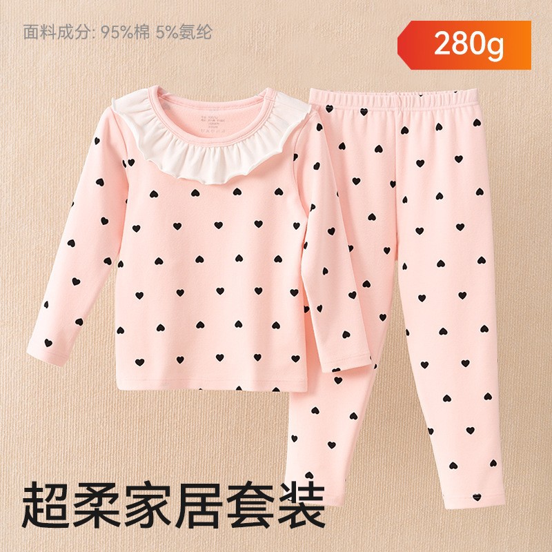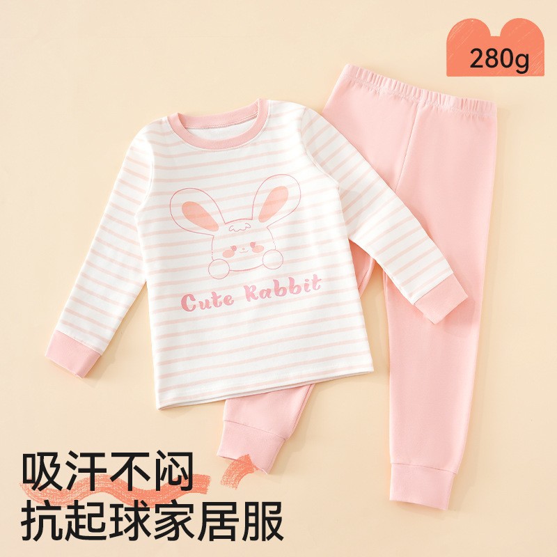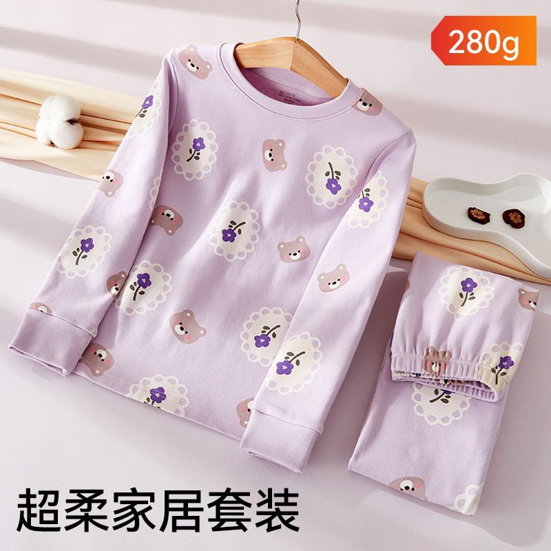 어린이 가을옷 가을바지 순면 속옷 세트 여자아이의 생년 순면 잠옷 용의 해 홈웨어 보온형