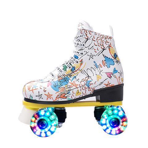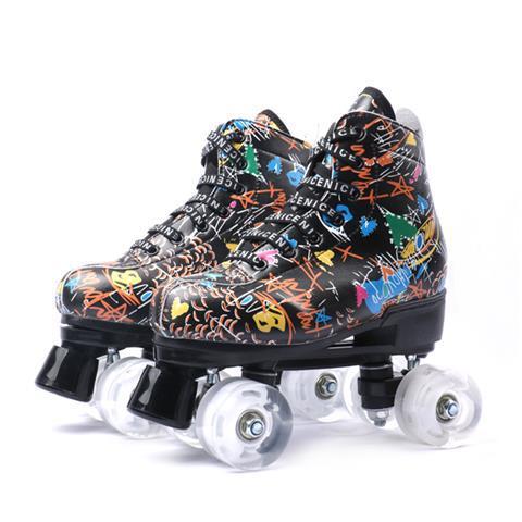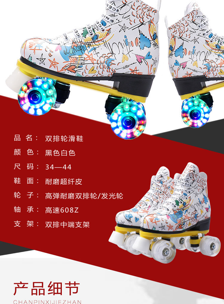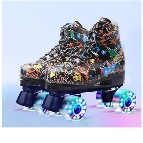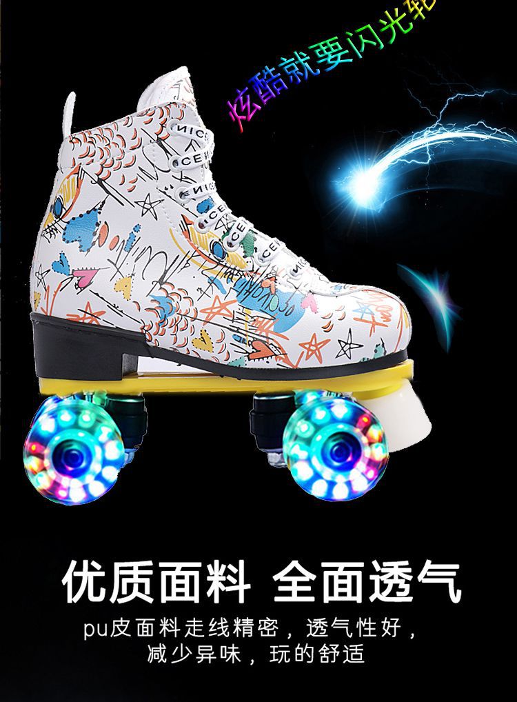 스케이트장 전문 멋진 플래시 휠 스케이트 더블 행 롤러 스케이트 성인 남녀 4 륜 어린이 롤러 스케이트