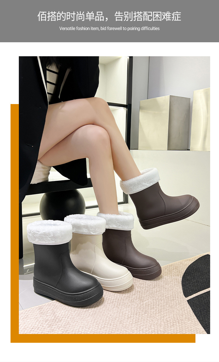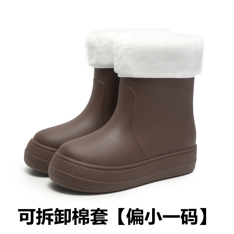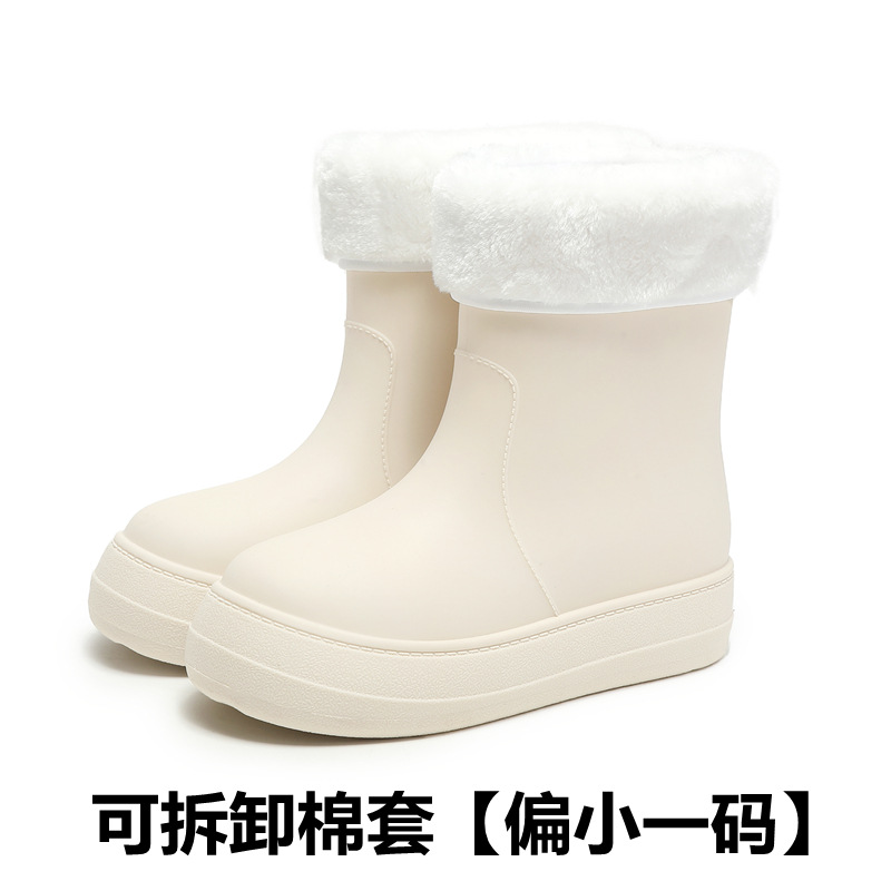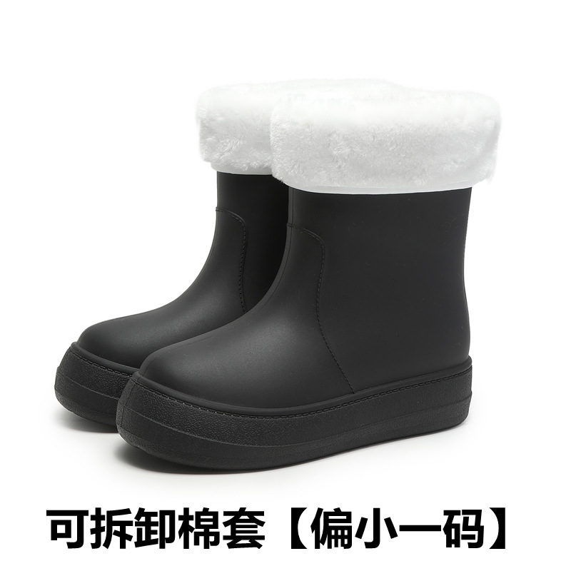 새로운 패션 여성 장화 낮은 튜브 방수 미끄럼 방지 장화 겨울 벨벳 분리 가능한 물 신발 소프트 솔 고무 신발 커버