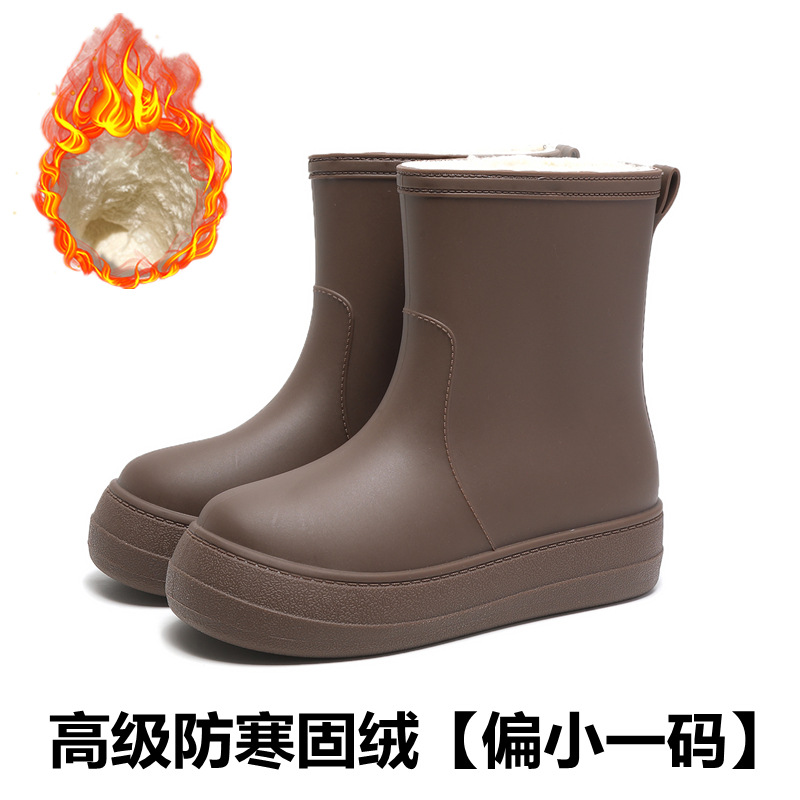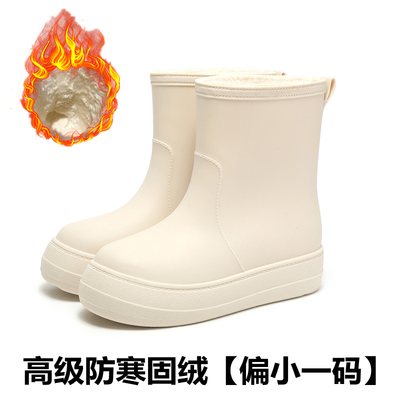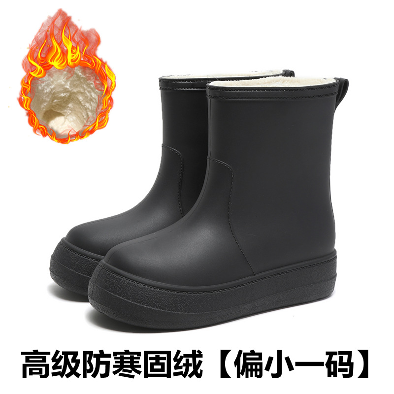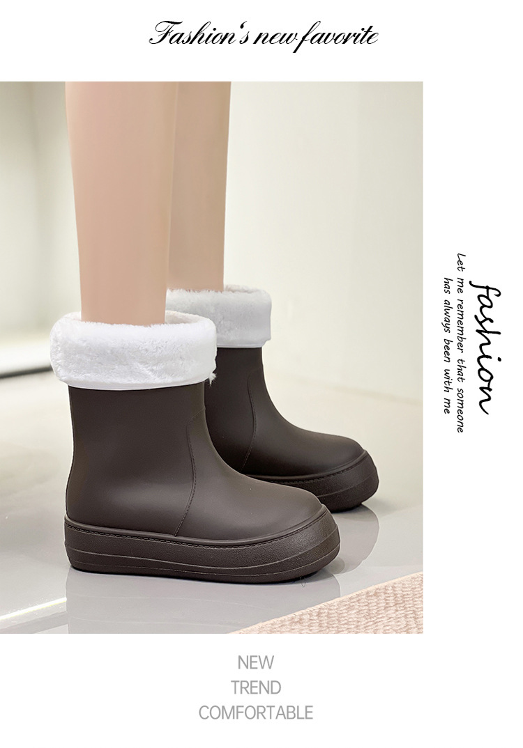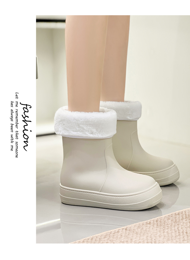 새로운 패션 여성 장화 낮은 튜브 방수 미끄럼 방지 장화 겨울 벨벳 분리 가능한 물 신발 소프트 솔 고무 신발 커버