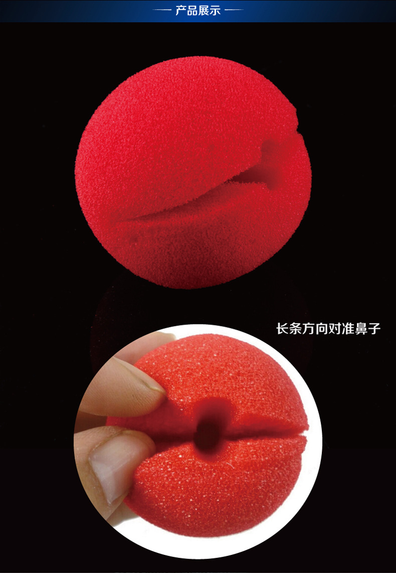 5CM慢回弹开孔自夹大红色小丑鼻子 万圣节搞怪装饰小丑鼻子