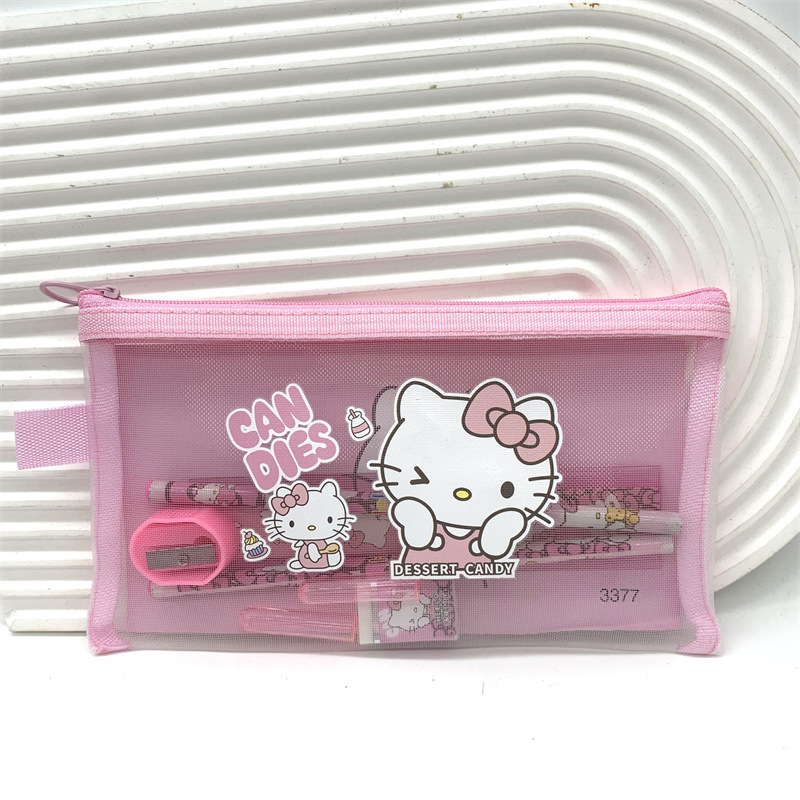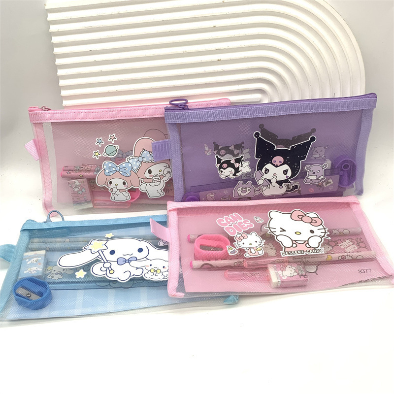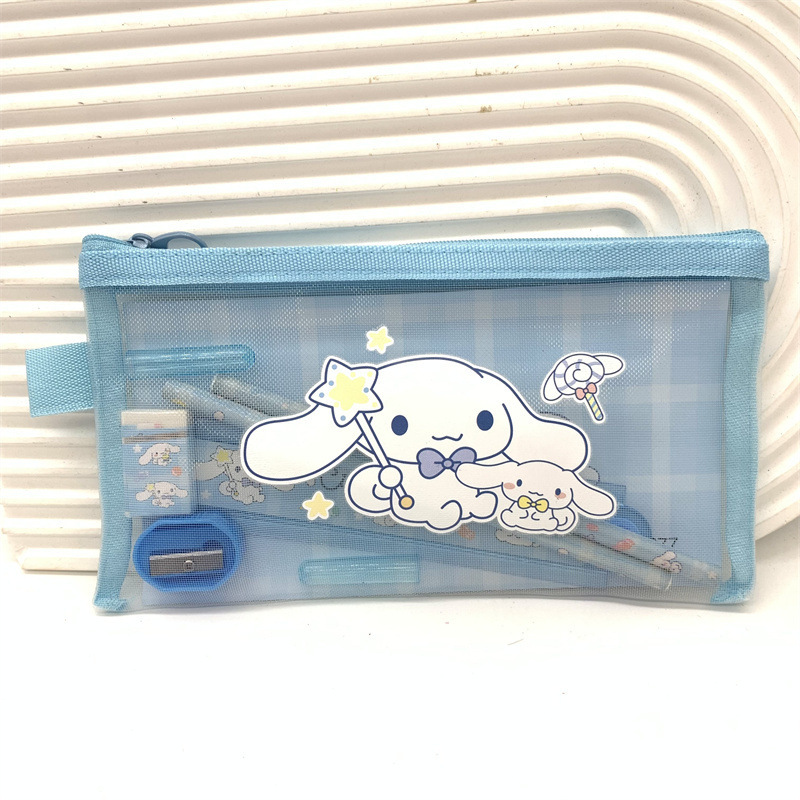 산리오 메쉬 큰 귀 개 연필 케이스 문구 조합 Culomi 접히는 통치자 연필 지우개 지퍼 가방스토어 가기