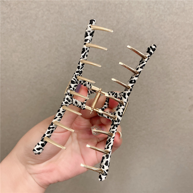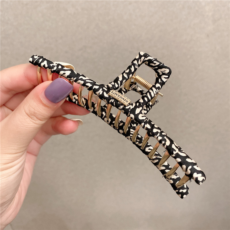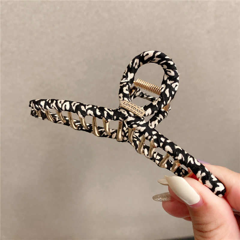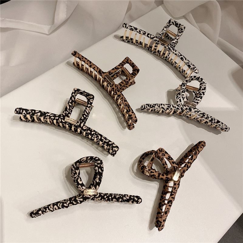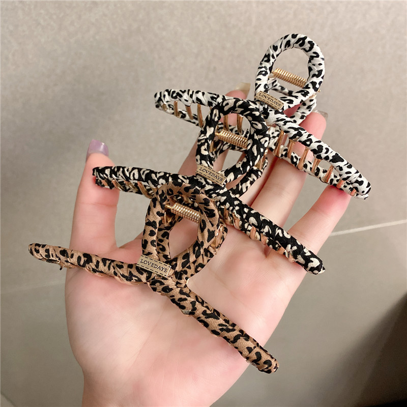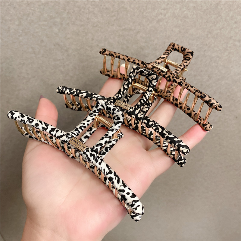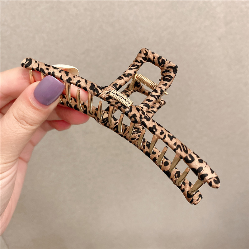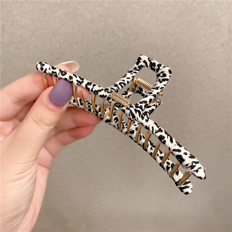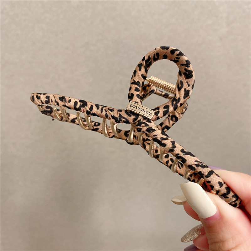 한국 금속 레오파드 무늬 클립 여성 등 머리 우아한 기질, 큰 새 공 머리 머리핀 상어 클립