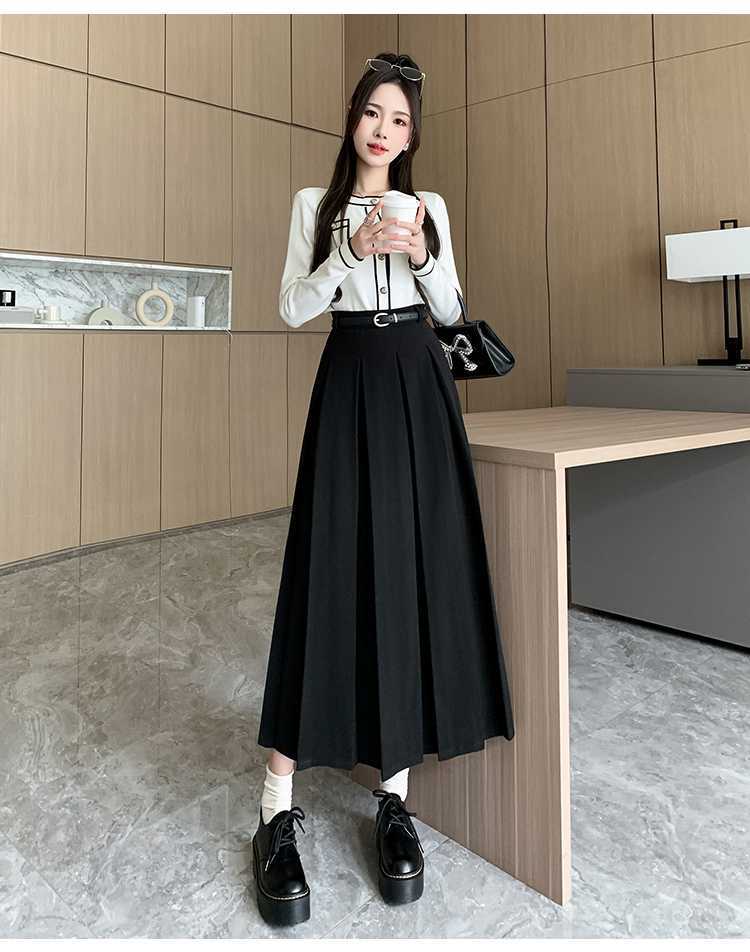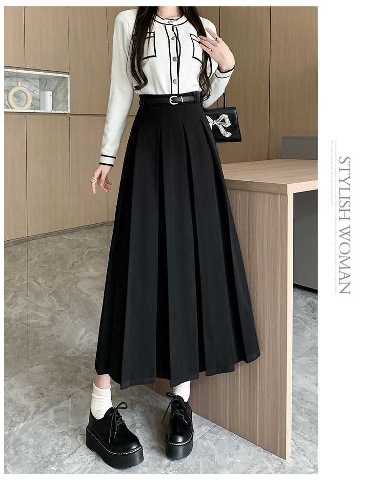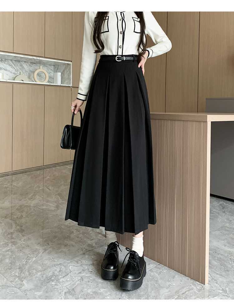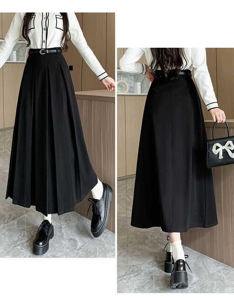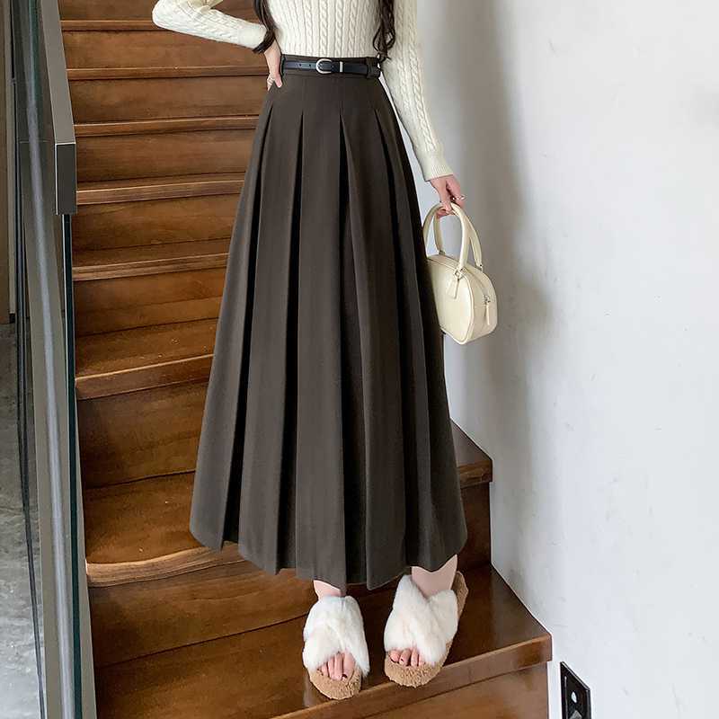 여자 치마 2023 겨울 새로운 높은 허리 주름 치마 우산 스커트 힙합 커버 슬리밍 중장 모직 A 라인 스커트