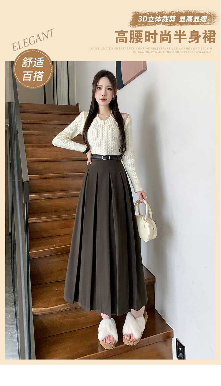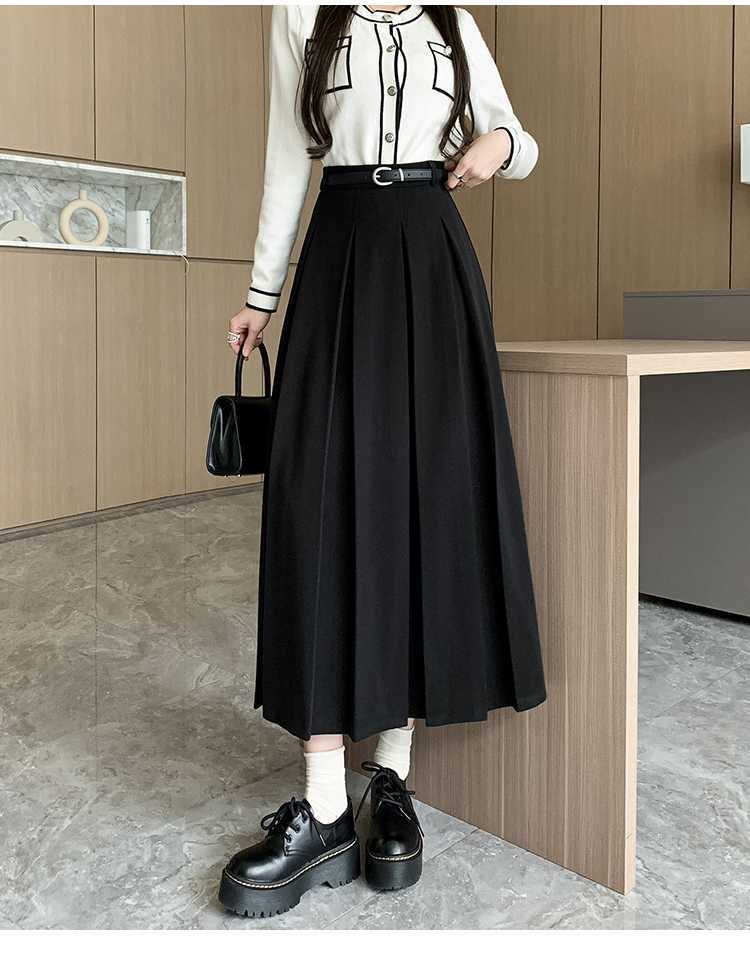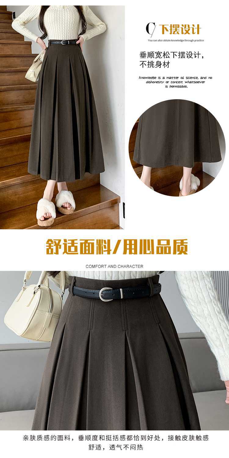 여자 치마 2023 겨울 새로운 높은 허리 주름 치마 우산 스커트 힙합 커버 슬리밍 중장 모직 A 라인 스커트스토어 가기