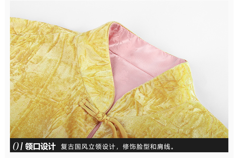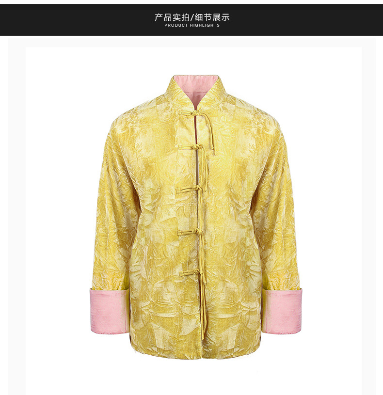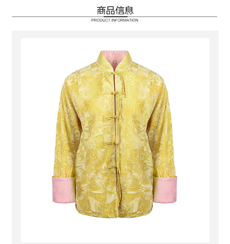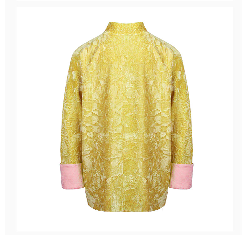 [재고] 2024 봄 미니 양 같은 중국 스타일 노란색 벨벳 버클 셔츠 고급 캐주얼 기질 재킷스토어 가기