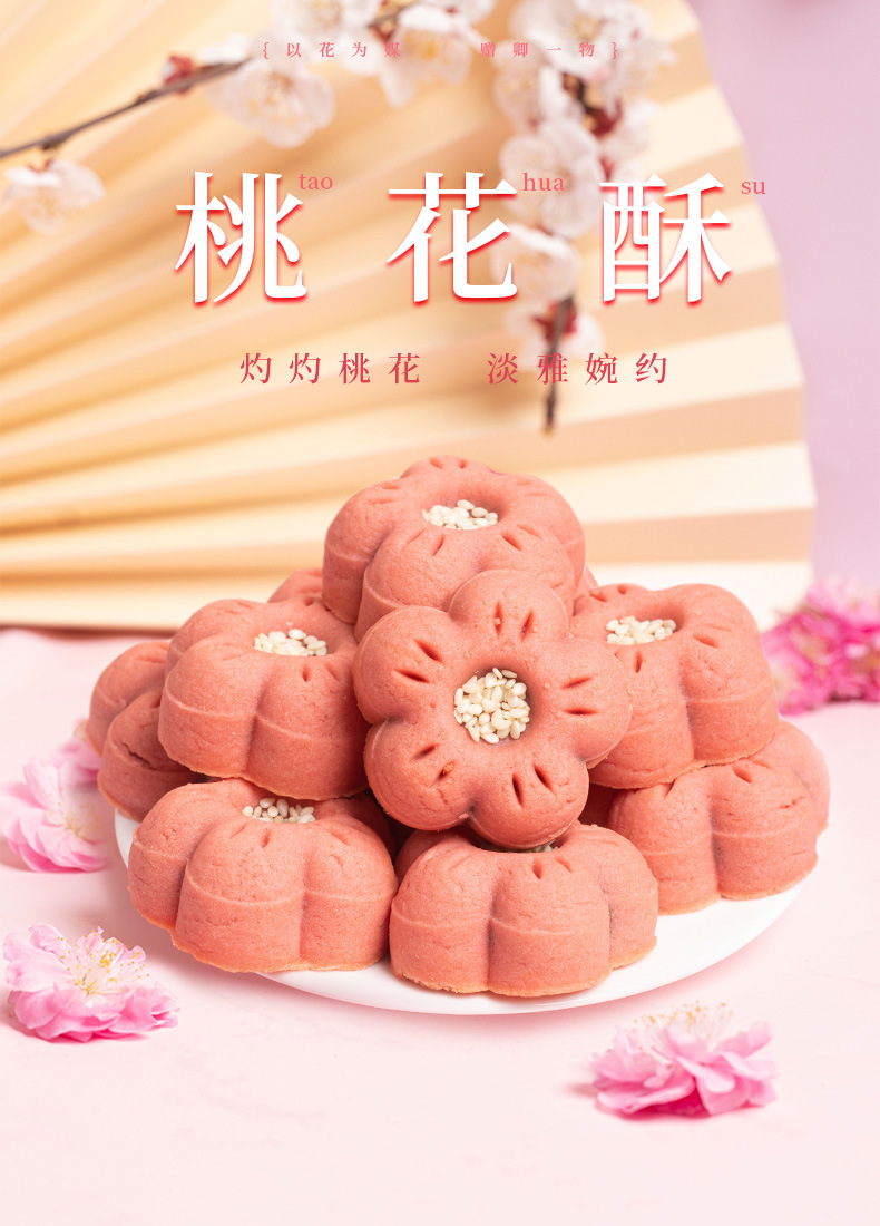 복숭아 꽃 케이크 맛있는 아침 식사 스낵 레저 음식 전통 과자 사무실 꽃 케이크 비스킷 케이크
