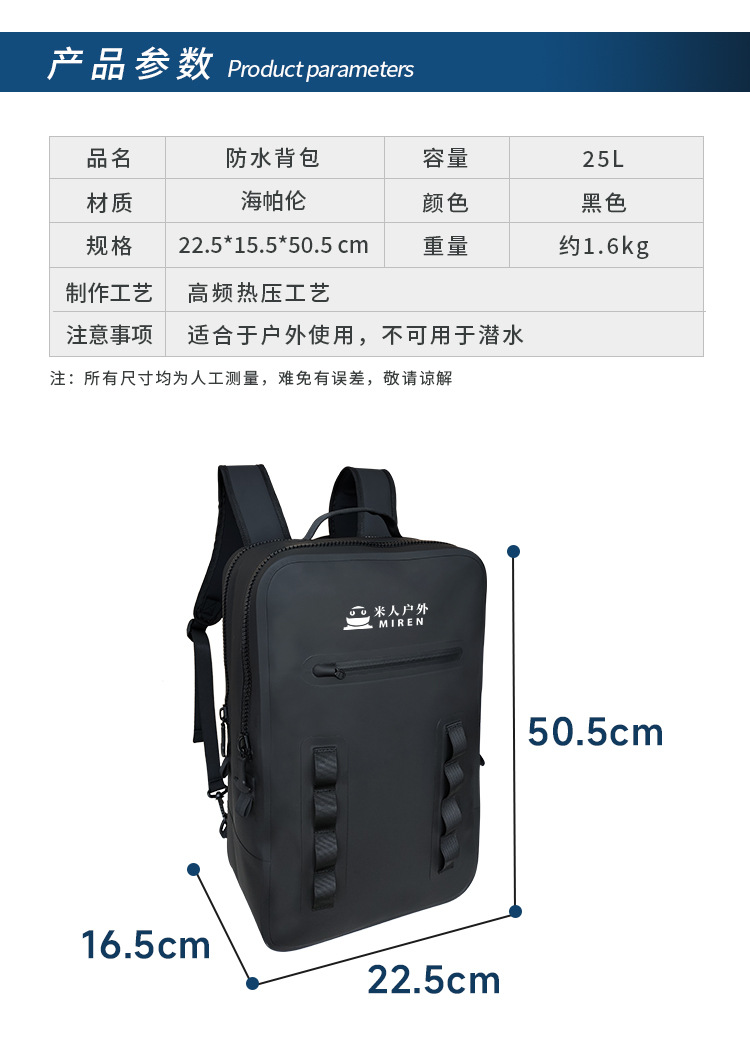 Mi ren 야외 25L 대용량 방수 가방 haipalun 배낭 해변 건조 가방 캠핑 보관 가방