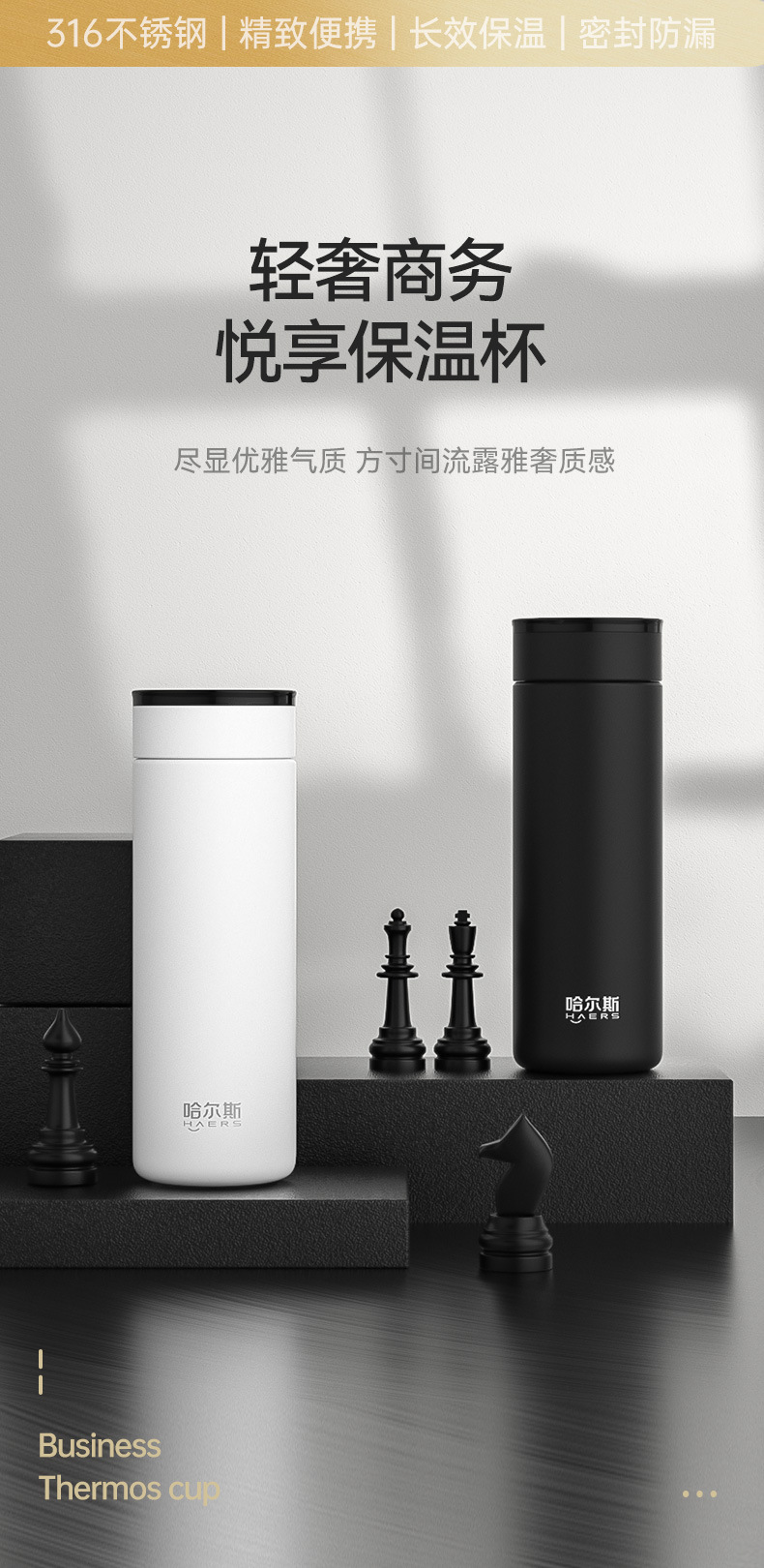 Hals 보온병 컵 남자 316 스테인레스 스틸 휴대용 컵 비즈니스 레터링 티 컵 2023 새로운스토어 가기