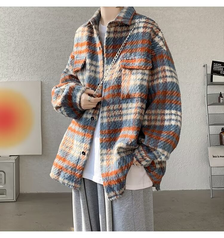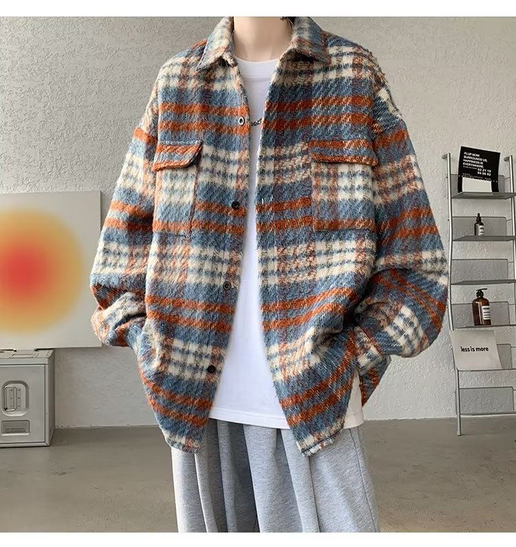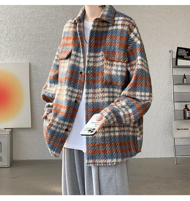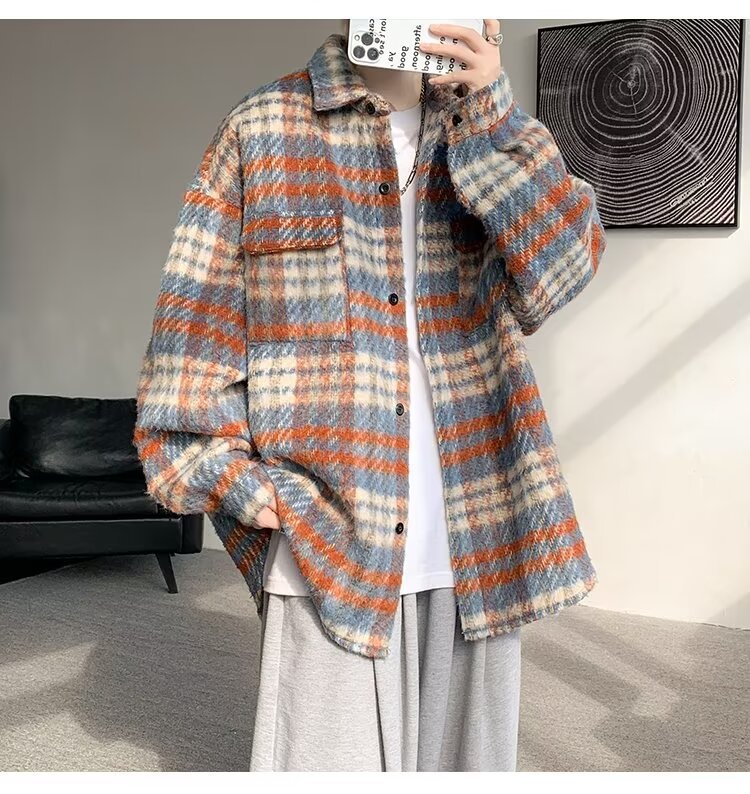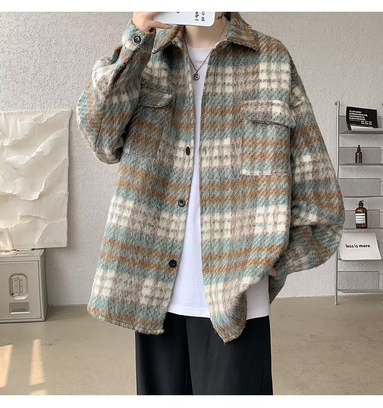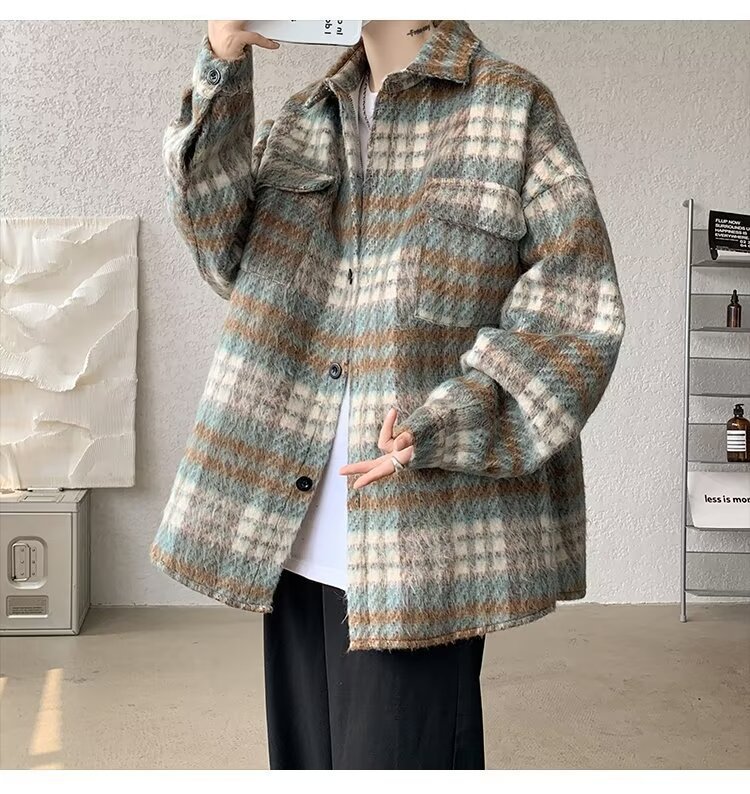 봄과 가을 패션 복고풍 모직 격자 무늬 코트 남성 패션 브랜드 캐주얼 느슨한 옷깃 재킷 탑 배달스토어 가기