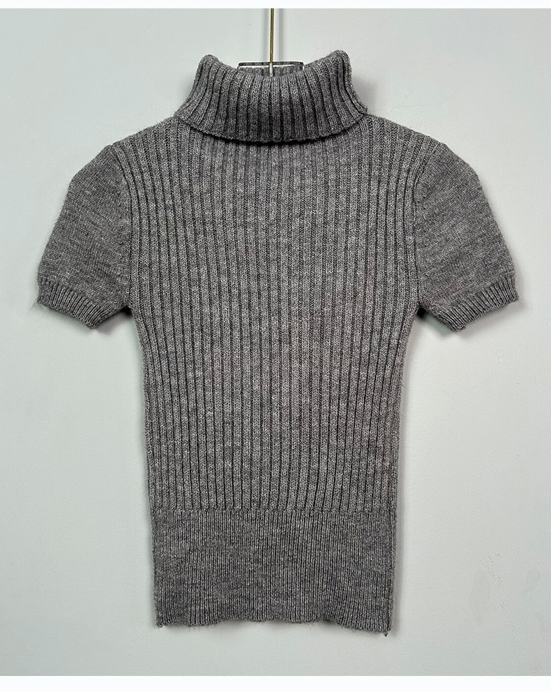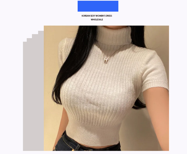 한국 동대문 페미인 편안한 착용 유행 올매치 탑 하이 허리 피겨 쇼트 반팔 니트 스웨터스토어 가기