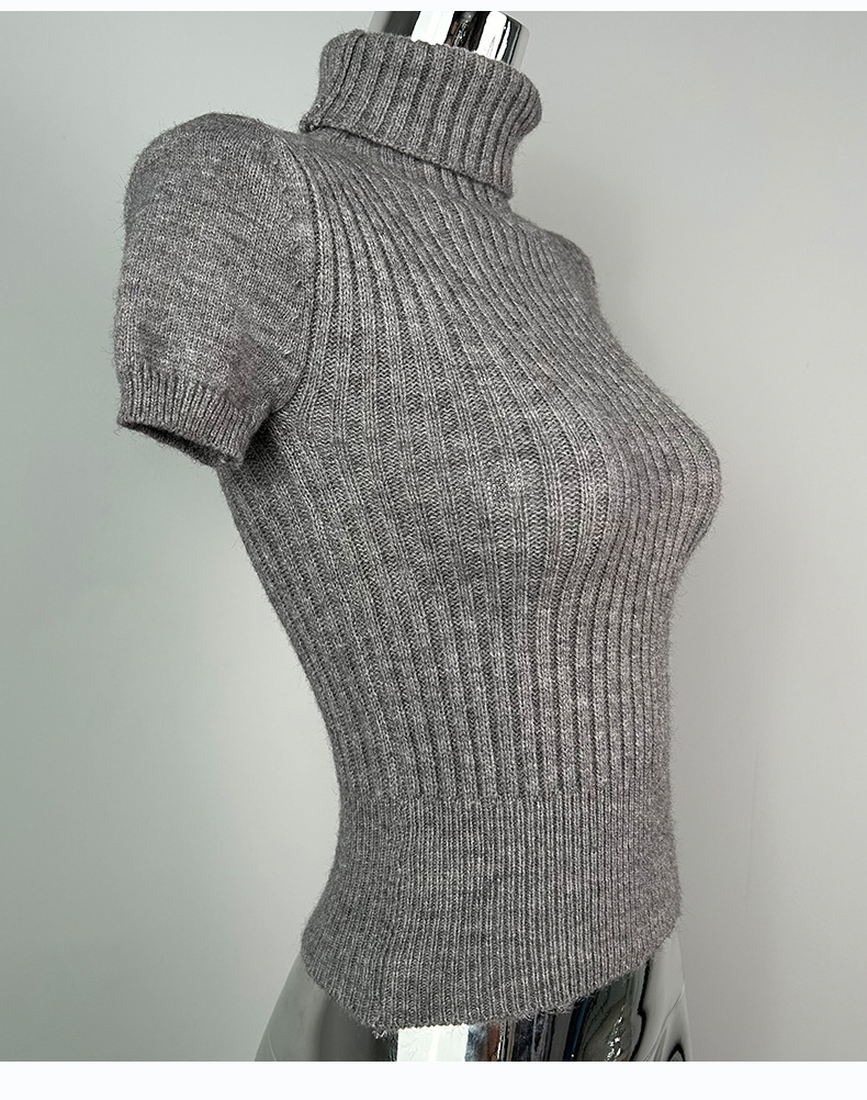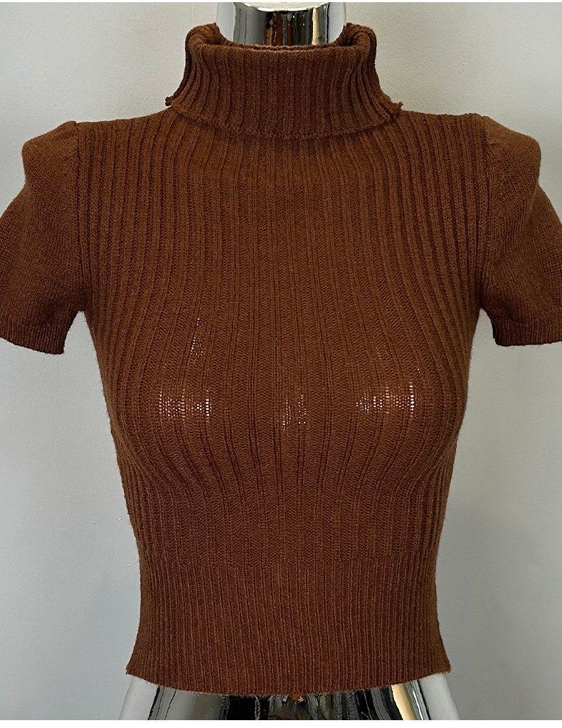 한국 동대문 페미인 편안한 착용 유행 올매치 탑 하이 허리 피겨 쇼트 반팔 니트 스웨터