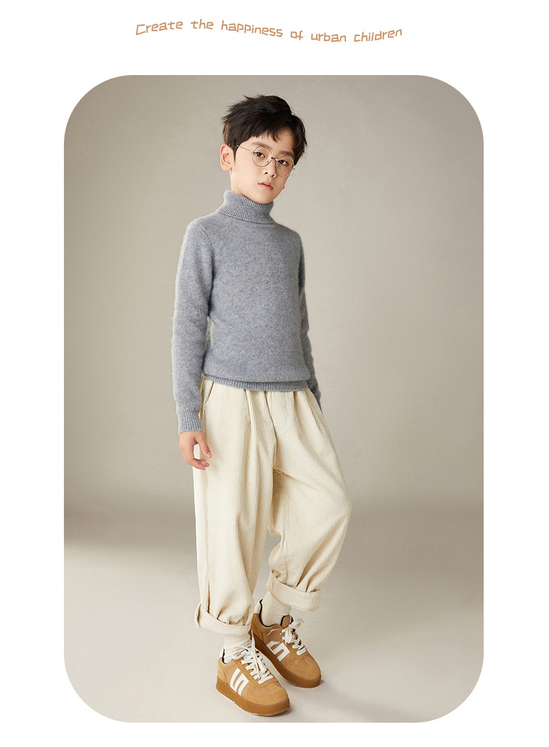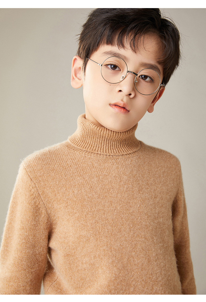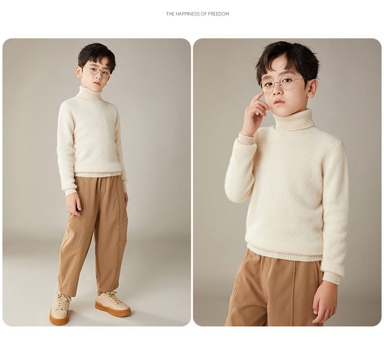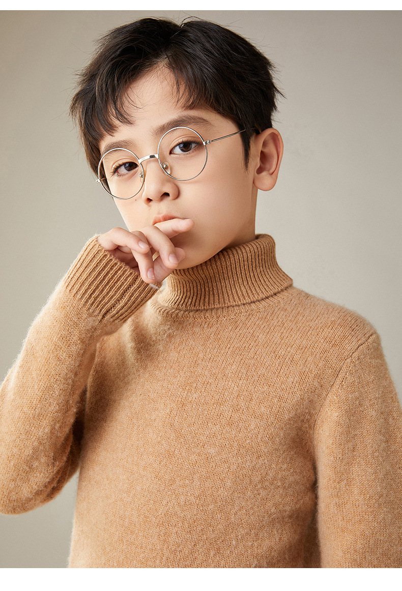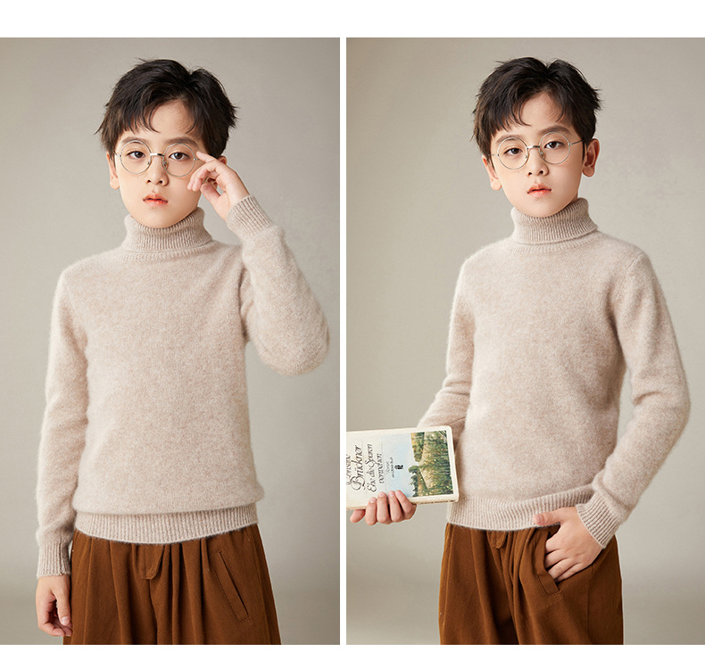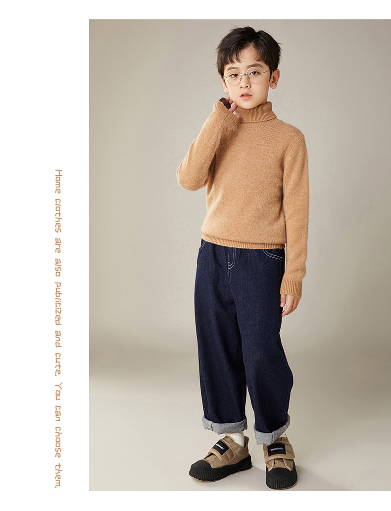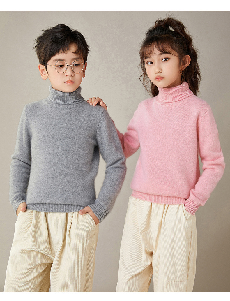 가을과 겨울 높은 옷깃 어린이 모직 스웨터 소년과 소녀 두꺼운 풀오버 단색 양모 니트 스웨터