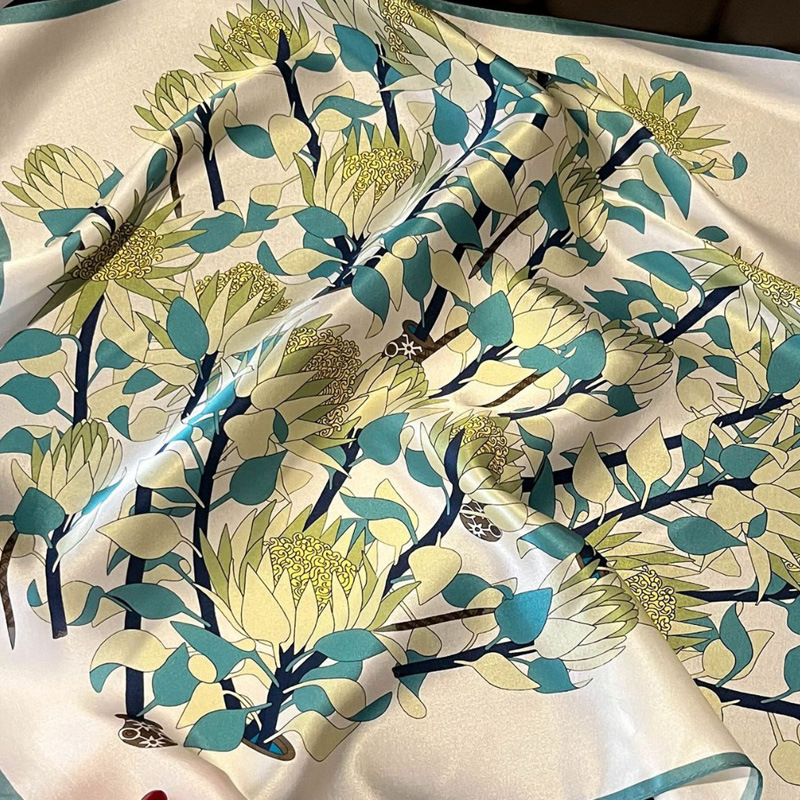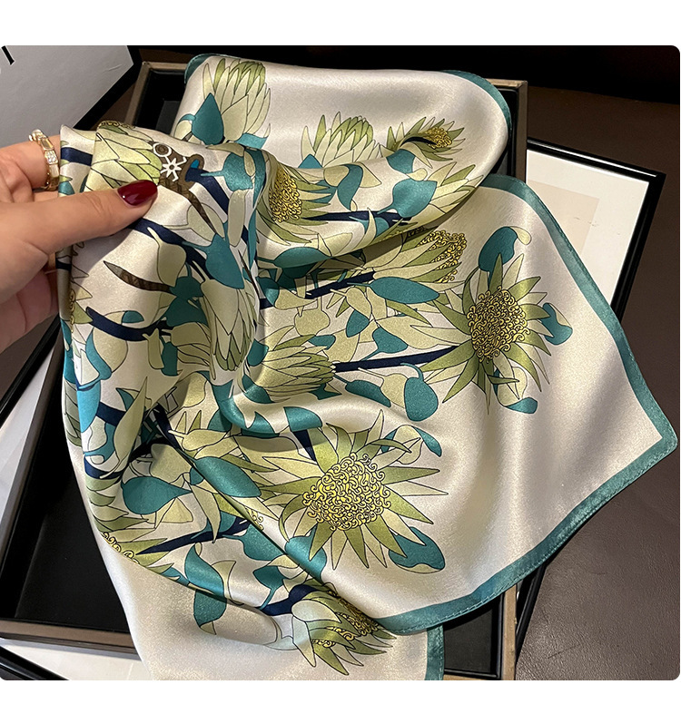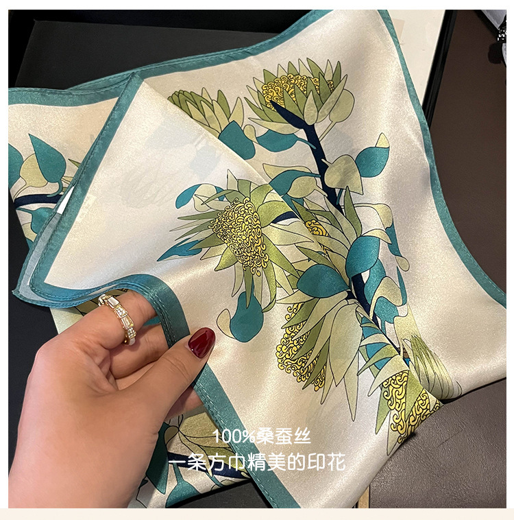 항주 실크 100% 뽕나무 실크 스카프 가을 꽃 실크 스카프 여성의 긴 스카프 리본 스퀘어 스카프 장식