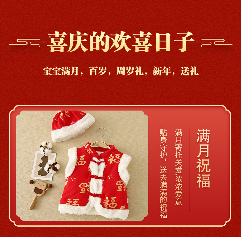 파파 아기면 패딩 조끼 가짜 투피스 신생아 큰 빨간 퀼트 점프 수트 중국 스타일 새해 복스토어 가기